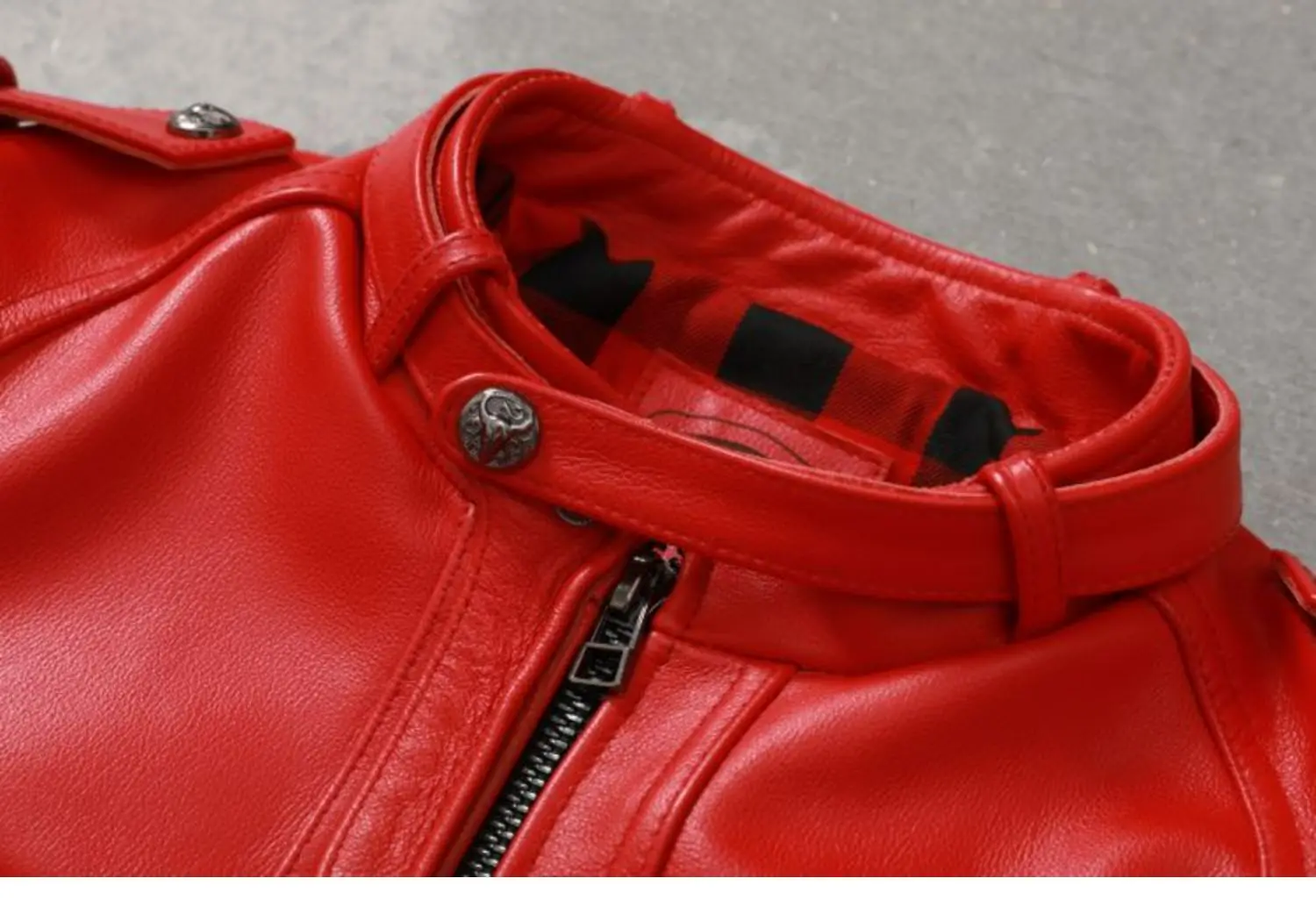 Men Leather Jacket Handsome Short Red Genuine Cowhide Biker Leather Jacket Black Tanned Sheepskin Slim Fit Jackets Autumn