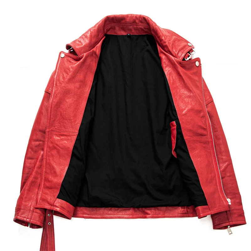 Men Motorcycle Coat Natural Sheepskin Vegetable Tanned Genuine Leather Male Biker Jackets Moto Riding Leather Coat Spring Autumn