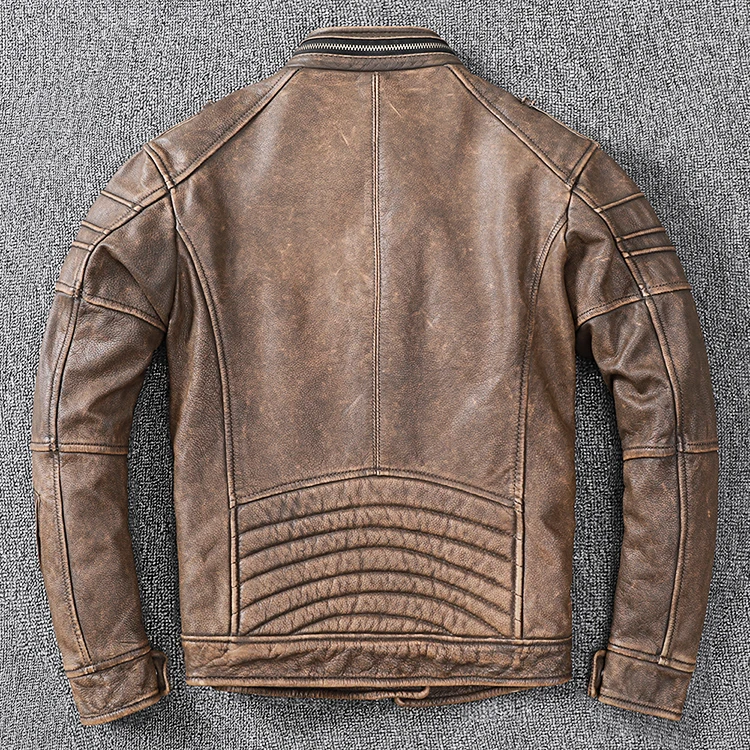 New Men Cowhide Coat Male Genuine Leather Jacket Vintage Style Man Motorcycle Biker Clothes Thick Calfskin Real Learher Coats
