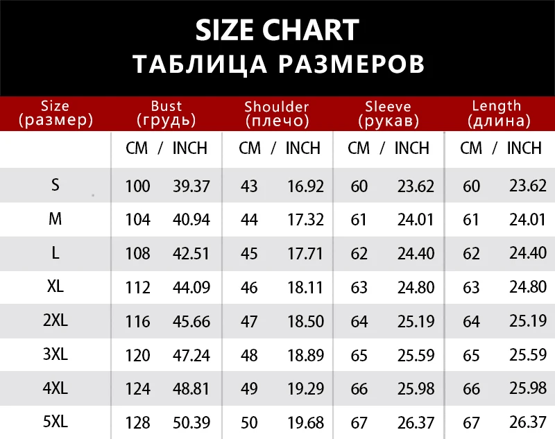 •All measurements above are actual garment measurements. For a good fit,please add 8cm~10cm to your body chest measurement when selecting your size from the table above.