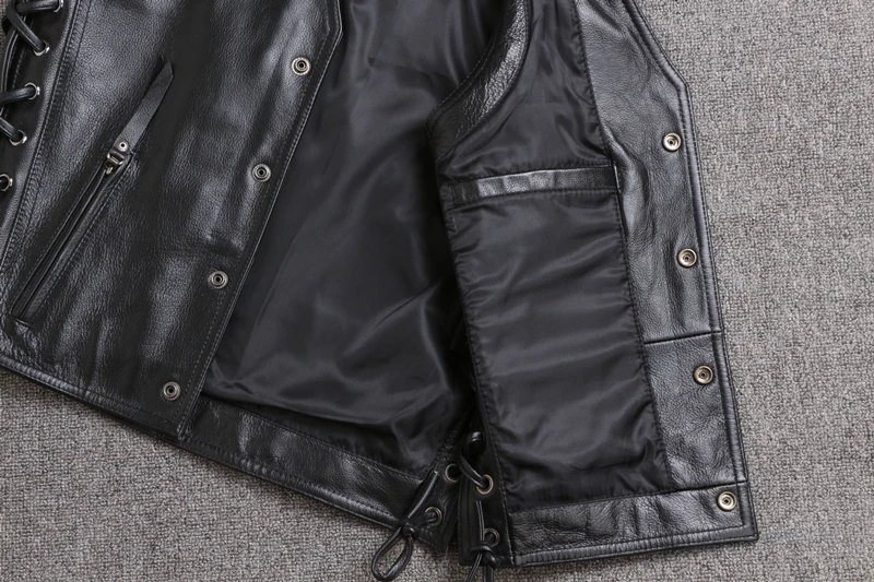 New Skull Embroidered Leather Waistcoat Men's Natural Cowhide Real Leather Slim Motor Vest Cross Motorcycle Biker Vest