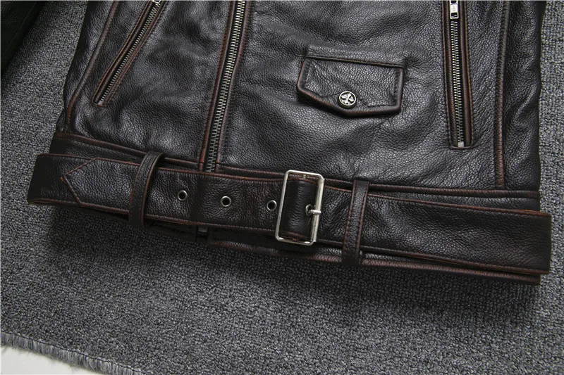 Oblique Zipper Vintage Brown Style Genuine Leather Jacket Men Real Natural Cowhide Motorcycle Style Slim Jackets Coat 2XL-5XL