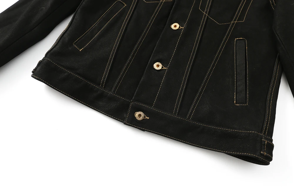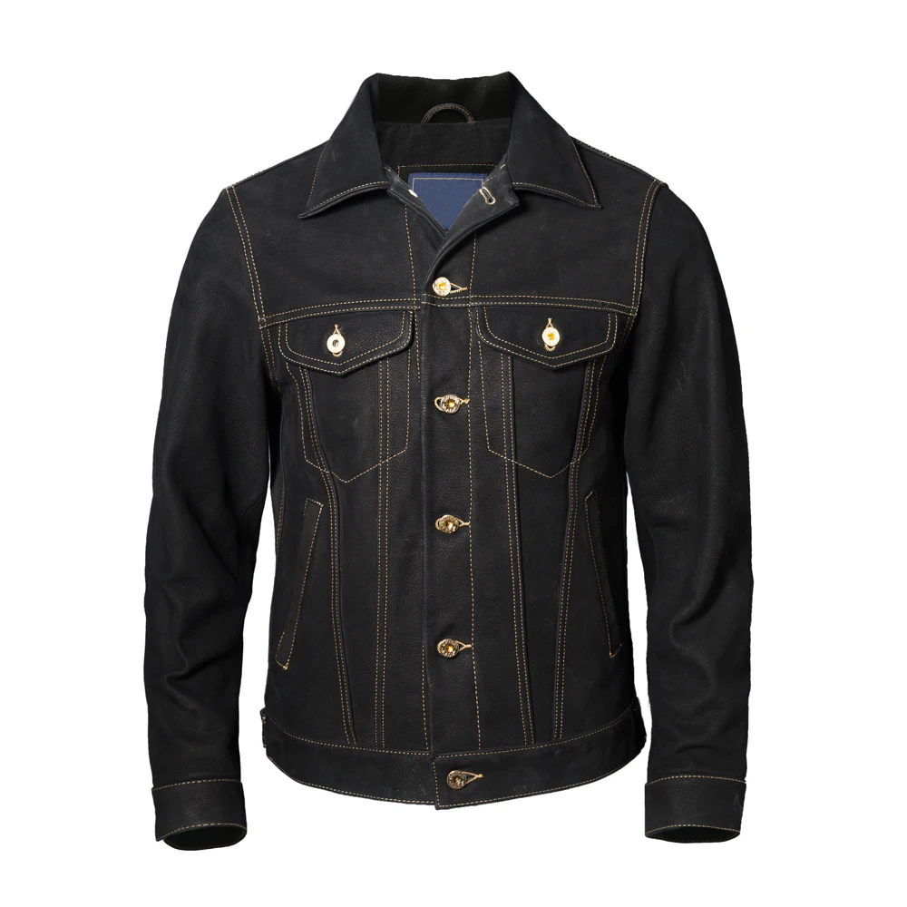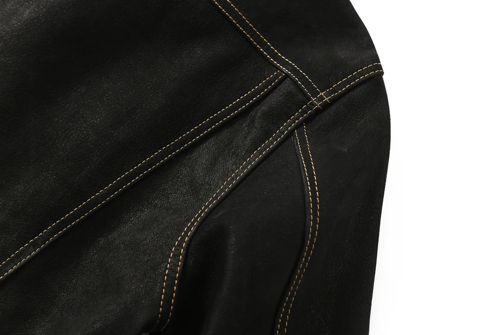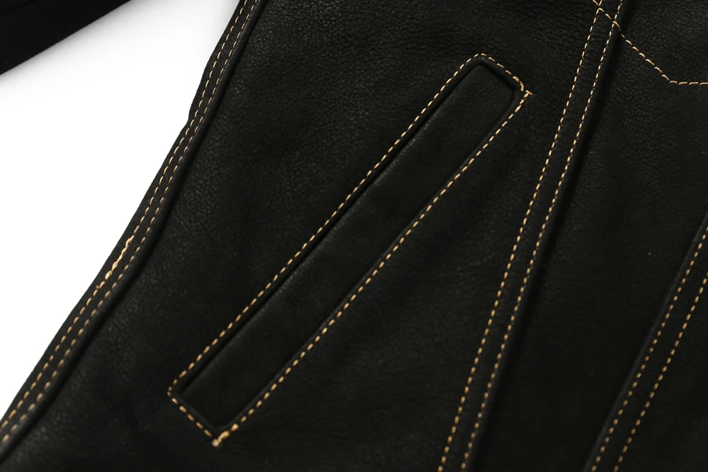 Super Men Leather Jacket Black Matte Thick 100% Natural Cowhide Skin Clothing Men's Genuine Leather Coat Autumn Asian Size M237