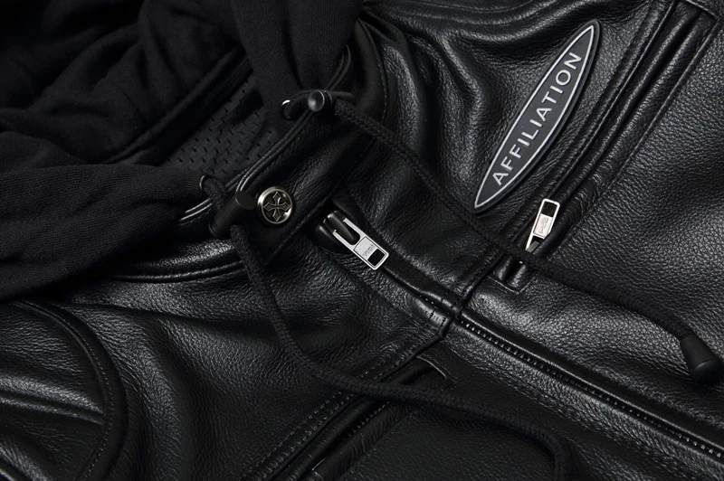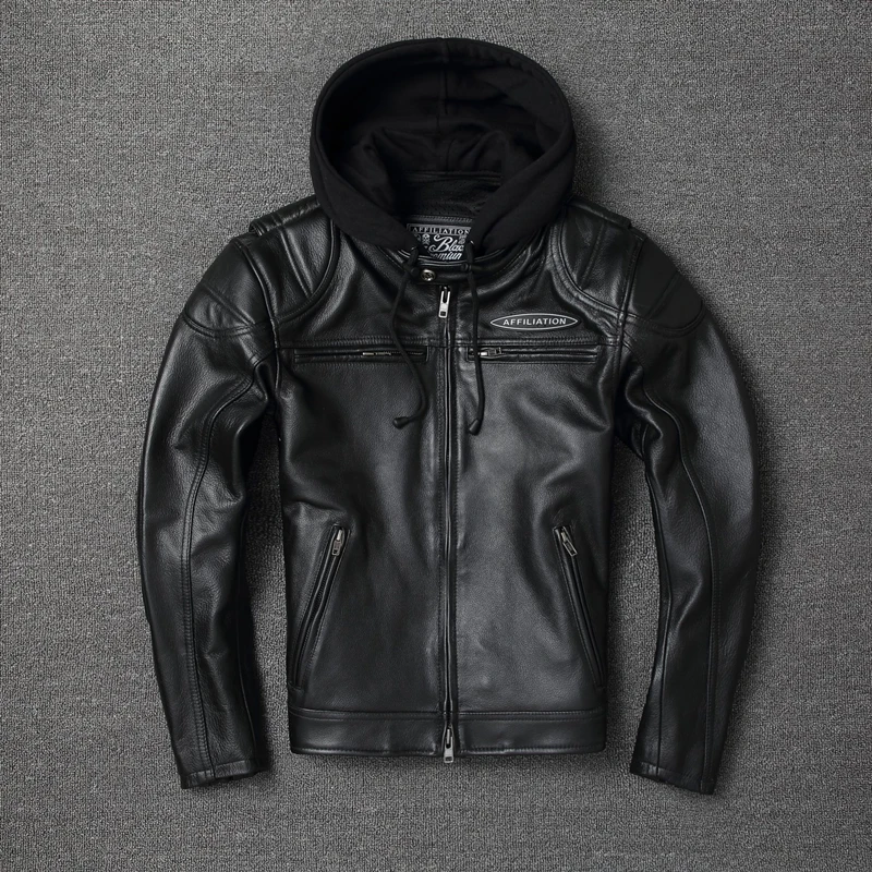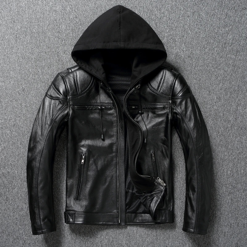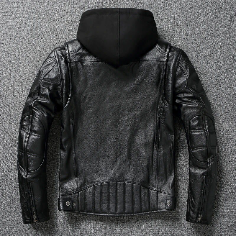 Thick Genuine Cowhide Leather Jacket Hood Classic Motorcycle Jackets Detachable Protective Men Leather Jacket Winter Biker Coat