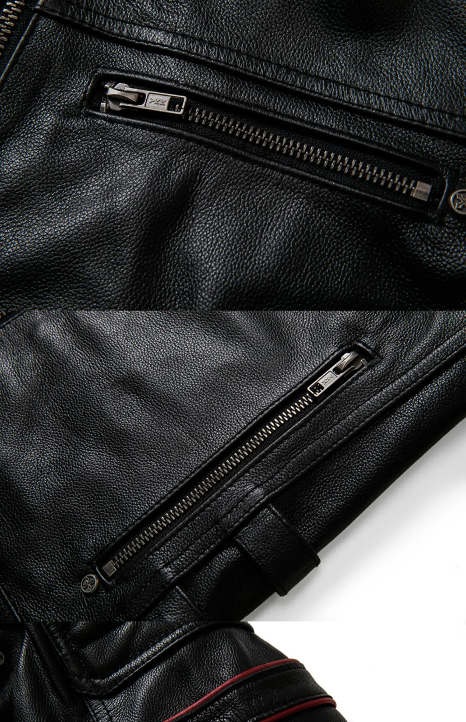 Back Embroidery Skull Motorcycle Jackets Real Cowhide Genuine Leather Jacket Mens Riding Jacket Motor Biker Men Leather Coat