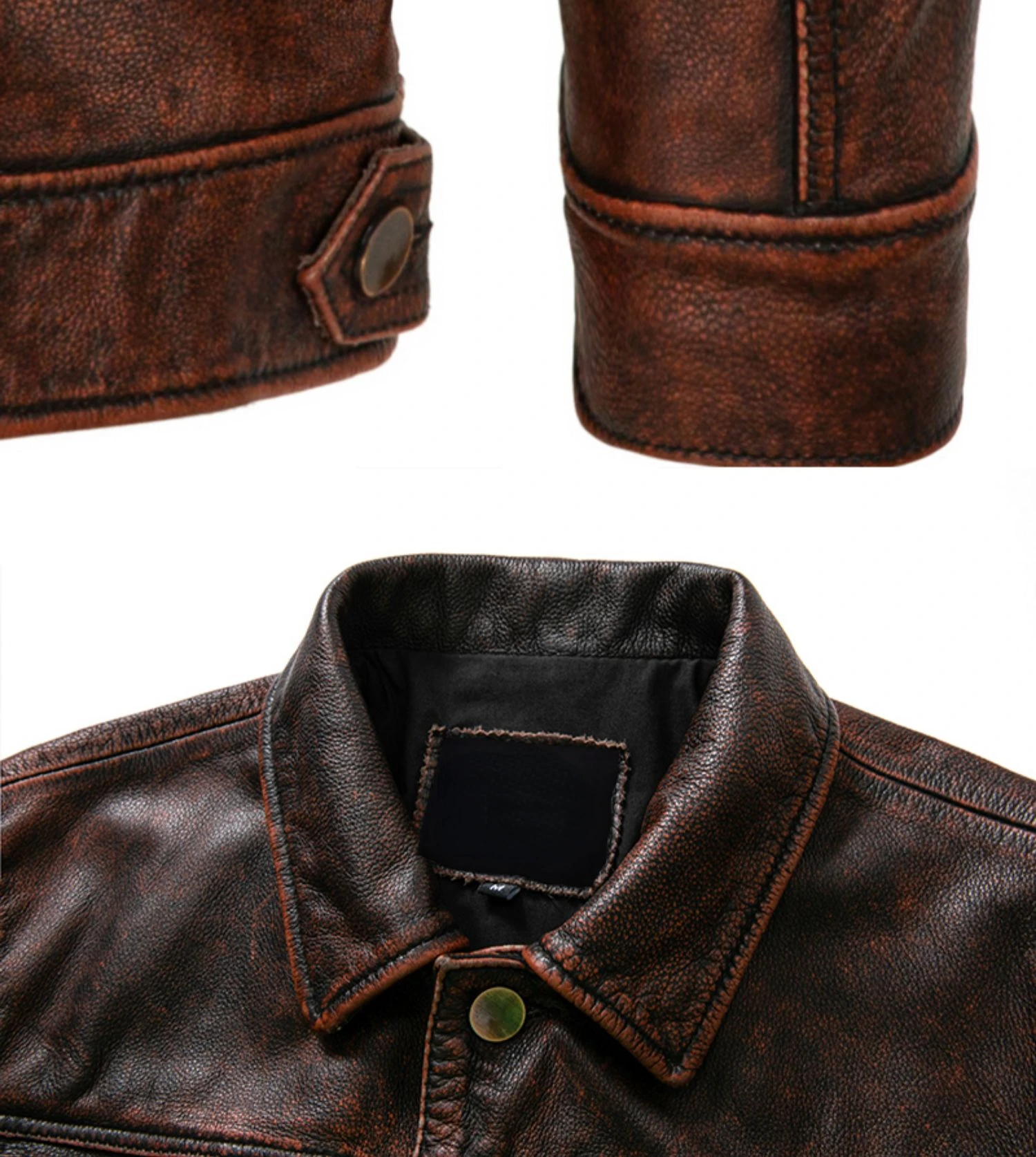 Cow Leather Jacket Men Real Cowhide Coat Men's Stone Milled Vintage Leather Jacket Mens Clothing Cow Coats For Men Autumn