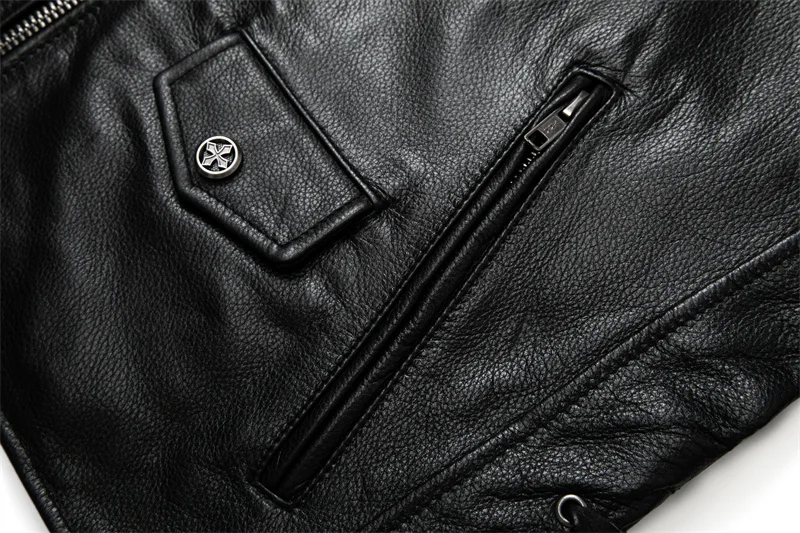 Men's Motorcycle Jacket Protectors Genuine Leather Clothes Natural Cowhide Oblique Zipper High Quality Coat Size S-5XL