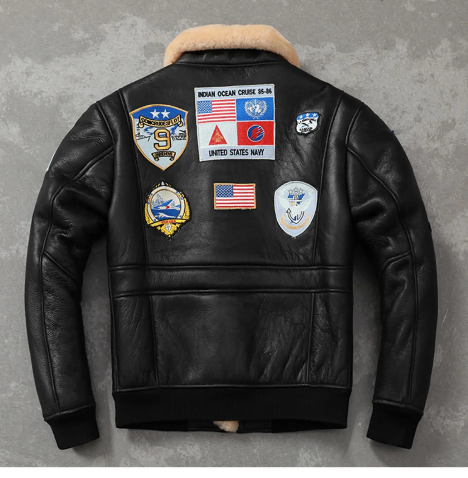 Natural Sheepskin Fur Men Shearling Coat Thick Warm 17 Patches G1 Flight Jackets Winter Aviator Coat Men Leather Jacket 가죽점퍼