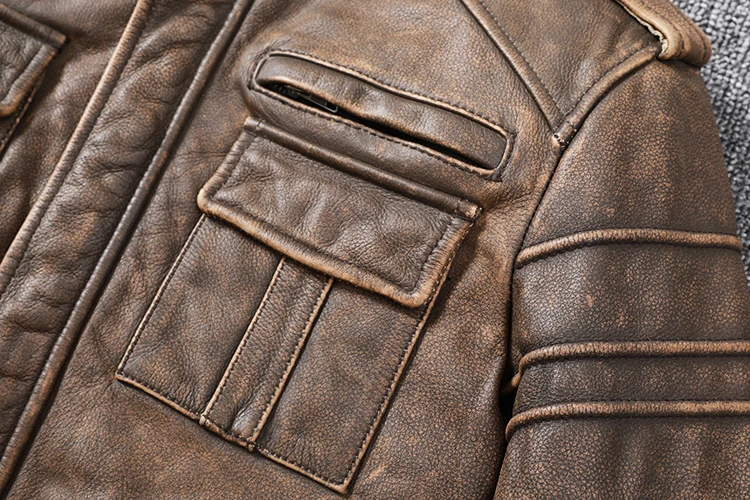 New Men Cowhide Coat Male Genuine Leather Jacket Vintage Style Man Motorcycle Biker Clothes Thick Calfskin Real Learher Coats