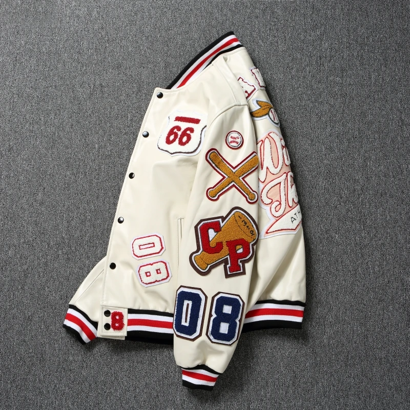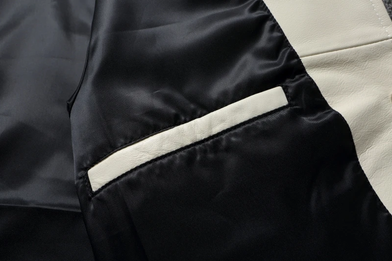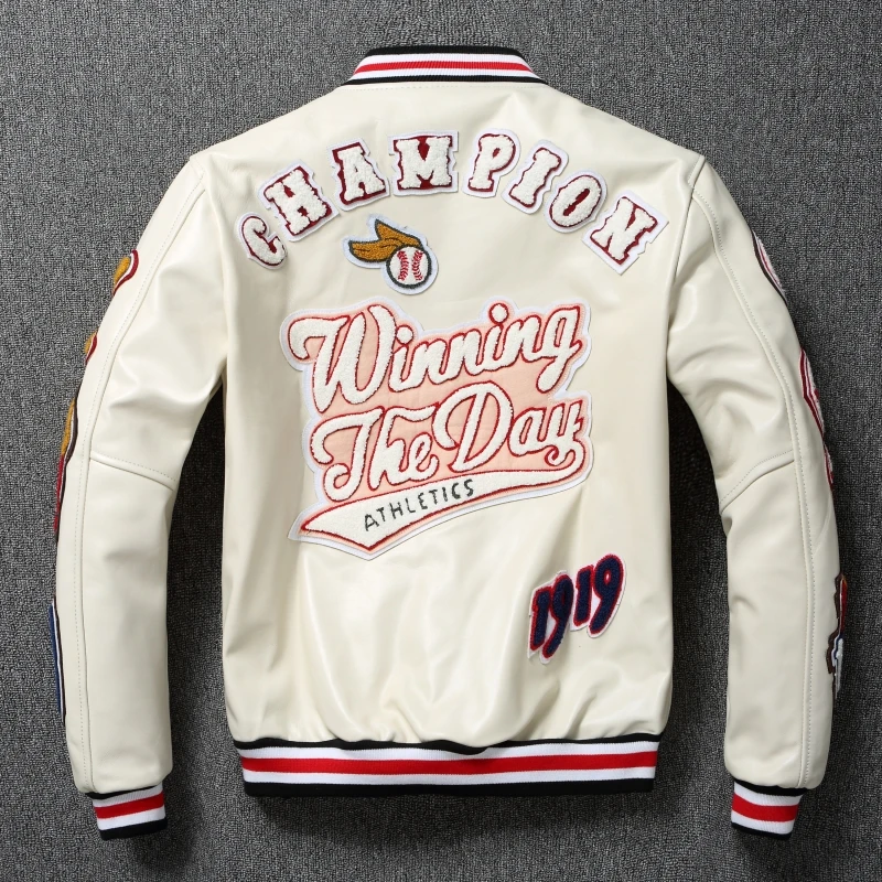 Embroidery Patches Baseball Jackets Genuine Cowhide Leather Jacket Men Motorcycle Biker Coats Autumn Mens Coat