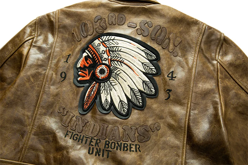 Indian Embroidery Skull Flight Jackets Oil Waxed Horsehide Genuine Leather Jacket Men Air Force Pilot Coat Aviator Clothes