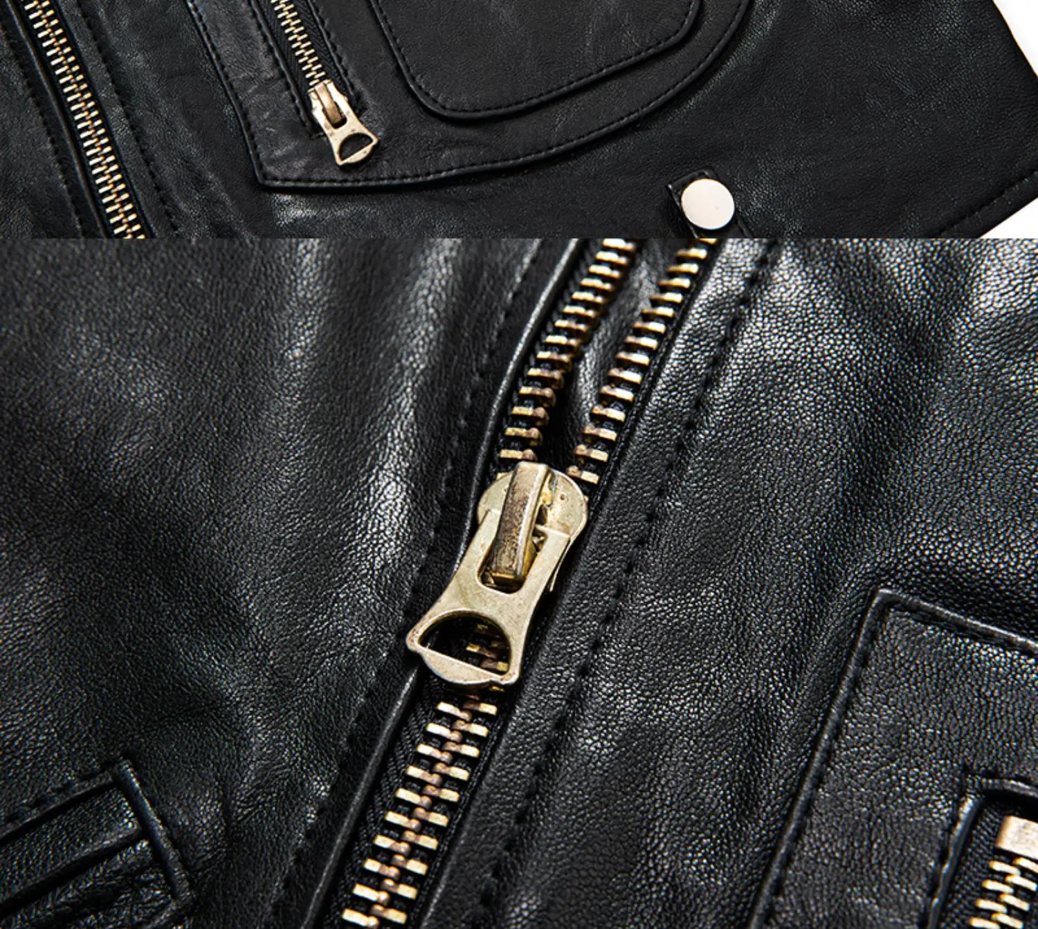 J24 Motorcycle Clothes Men Leather Jacket Vegetable Tanned Real Sheepskin Leather Jacket Slim Fit Motor Biker Clothing Autumn