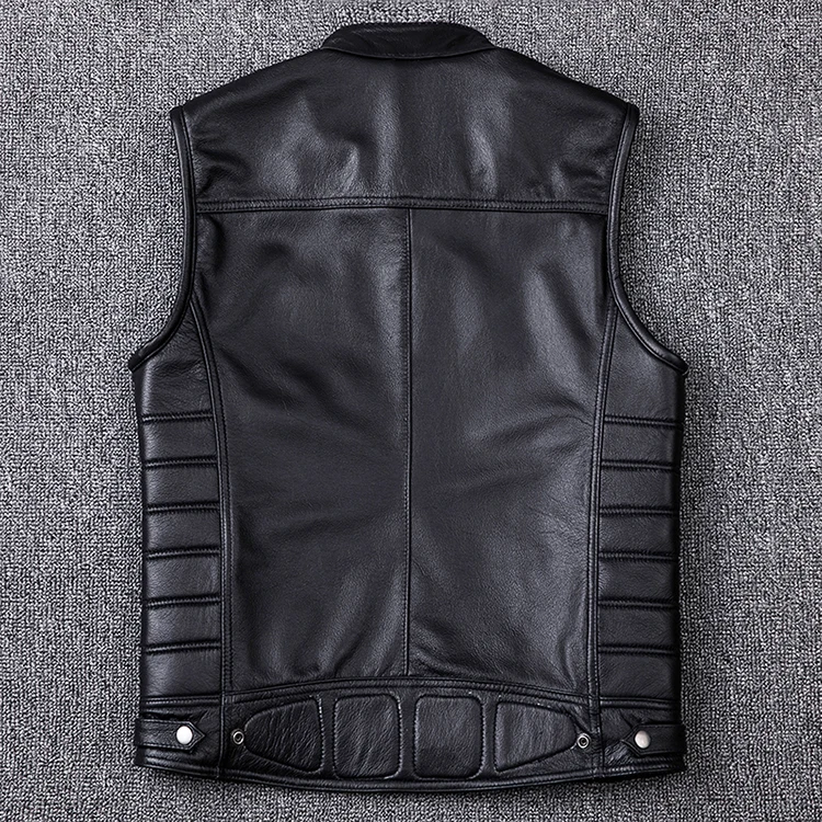 New Genuine Cowhide Leather Vest Men's Motorcycle Biker Vests High Quality Stand Collar Sleeveless Jackets Zipper Waistcoat
