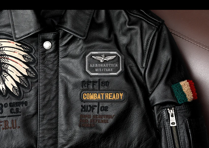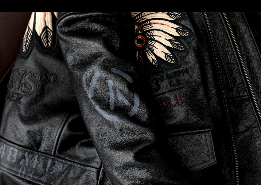 New Indian Embroidery Flying Suit Natural Genuine Leather Coat Men's Cowhide Leather Motorcycle Jackets Slim Fashion Clothing