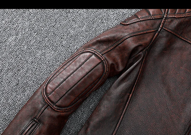 New Vintage Style Mens Real Cowhide Clothes Biker Genuine Leather Jacket Fashion Brown Leather Slim Coat Men Cow Leather Jacket