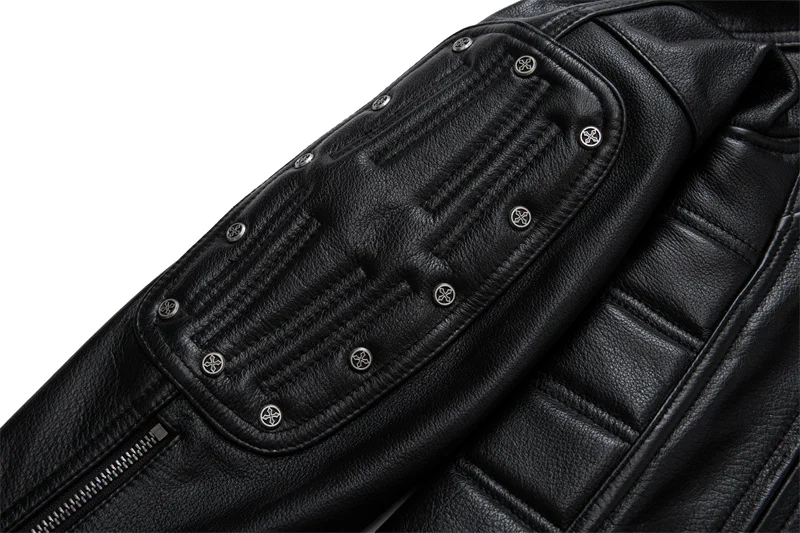 Protective Motorcycle Clothing Cowhide Leather Leather Men's Motorcycle Riding Clothing Calfskin Leather Jacket Biker Coat Men