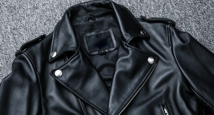 Spring and Autumn Natural Leather Jacket Black Soft Men's Motocycle Jackets Motor Clothing Biker Slim Short Coat