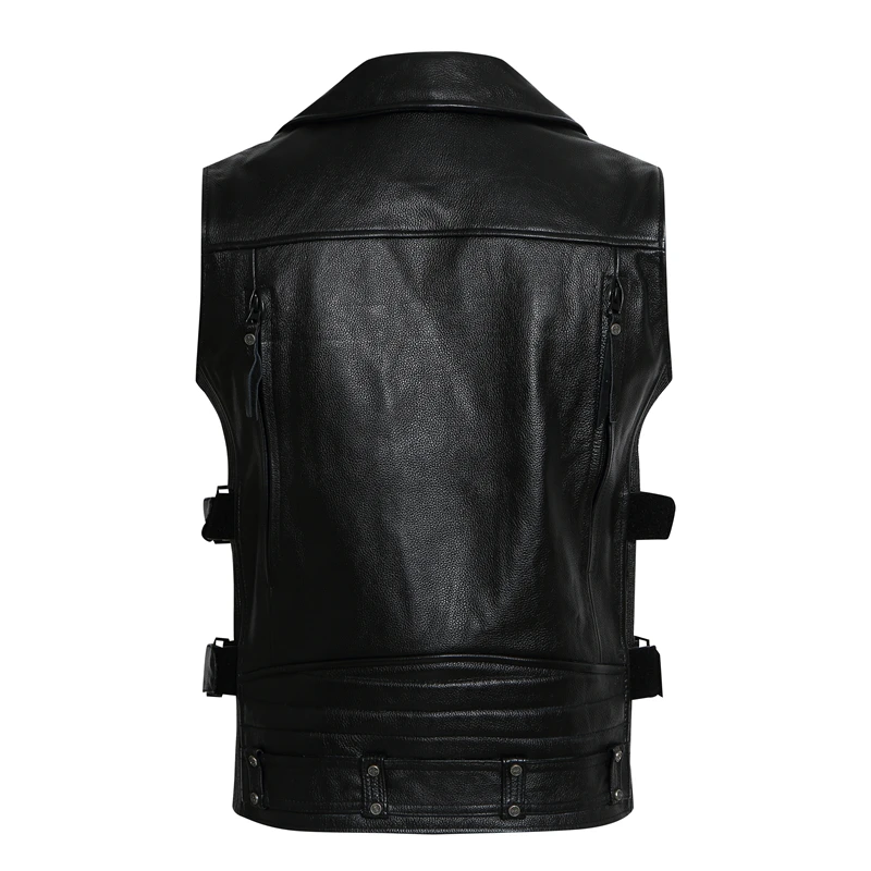 Biker Vest Top Layer Cowhide Leather Vest Men's Slim Short Motorcycle Clothing Riding Jacket Sleeveless Genuine Cow Club Vest