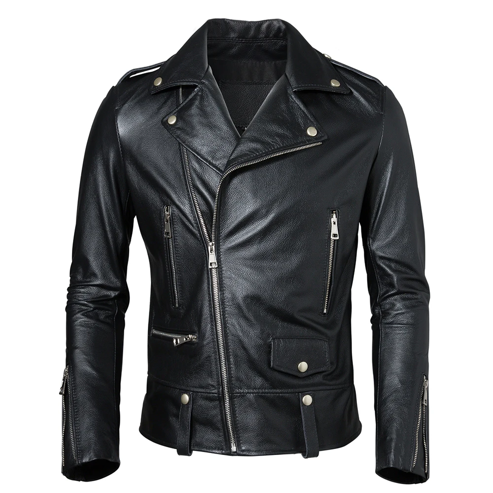 Classic Men Genuine Leather Jacket Thin 100% Real Cowhide Male Skin Coat Motorcycle Biker Clothing Spring Autumn Asian Size M611