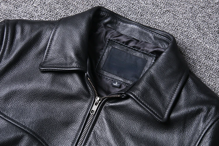 Free Shipping New Genuine Leather Jacket Men's Natural Cowhide Leather Coat Short Fit Lapel Baseball Suit Clothing