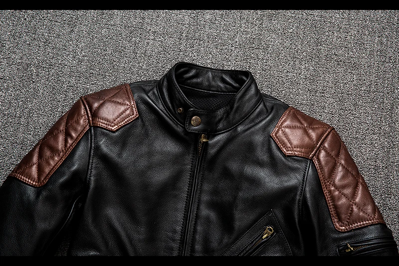 Men Motorcycle Jackets Cowhide Leather Jacket Men Natural Genuine Leather Clothes Protectors Biker Clothing Mens Coat S-2XL