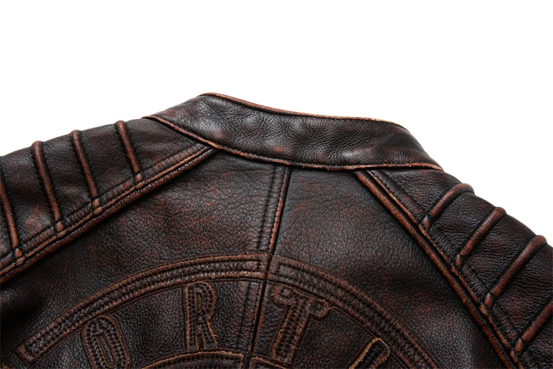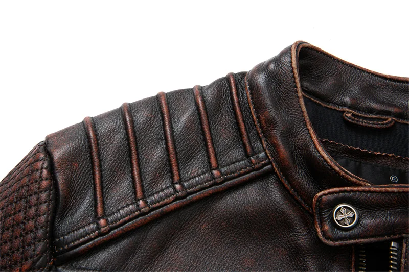 Mens Motorcycle Jacket Genuine Leather Coats Moto Biker Men Jackets Vintage Calf Skin Real Leather Coats Men Racer Clothing