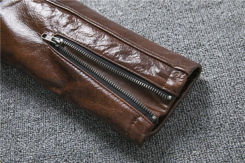 New Natural Oil Wax Calf Skin Jackets Men's Vintage Yellow Brown Leather Jacket Thick Turn Cowhide Slim Coats