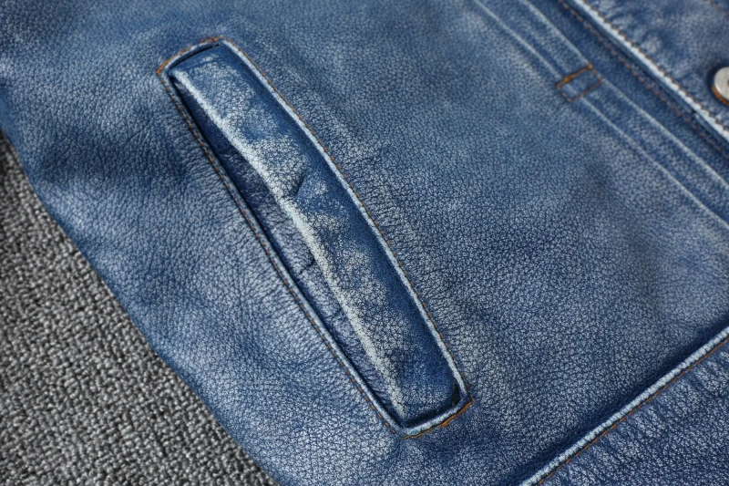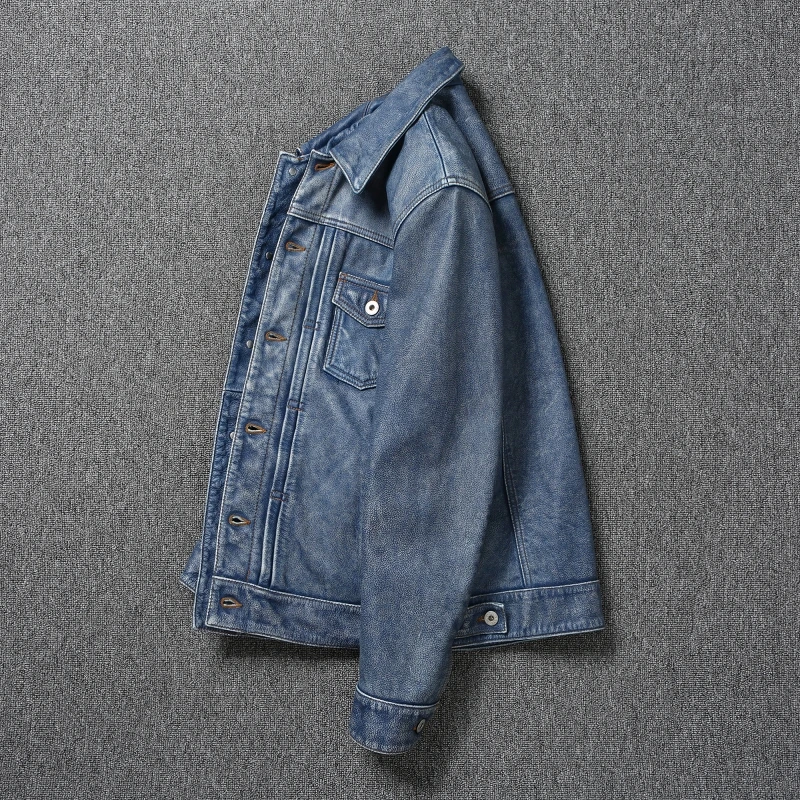 Vintage Blue Genuine Leather Jacket Men 506 Style Slim Fit Short Cowhide Skin Mens Leather Coat Autumn Натуральная Кожа Куртка