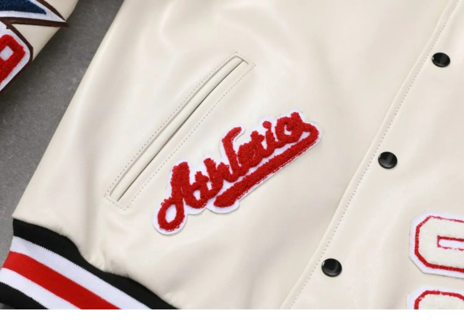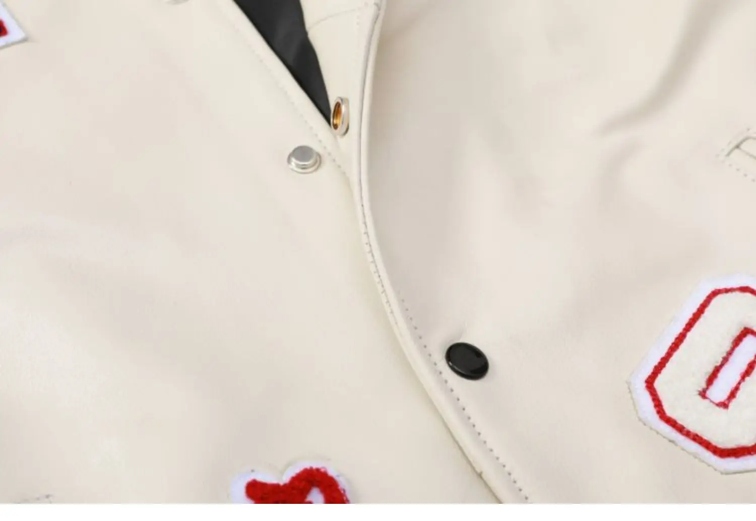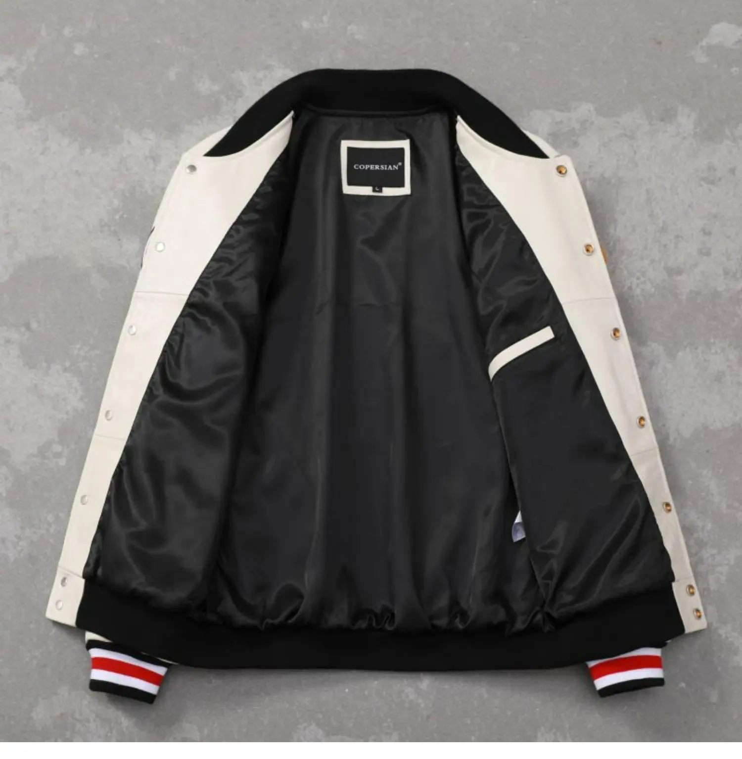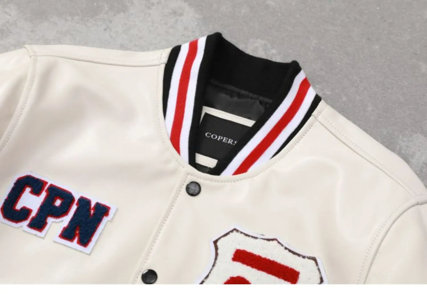 Fashion Terrycloth Embroidery Genuine Leather Baseball Jacket White Black American Style Sport Coat Loose Street Mens Jacket