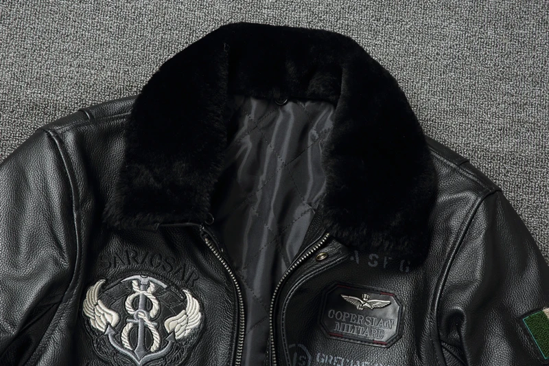 Genuine Cowhide Men Leather Coat Natural Fur Mens Leather Jacket Winter Coats Flight Jackets Men Leather Biker Jacket