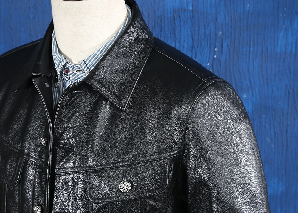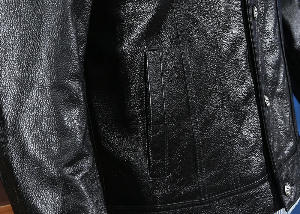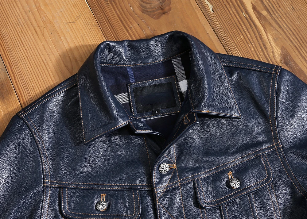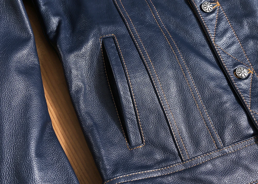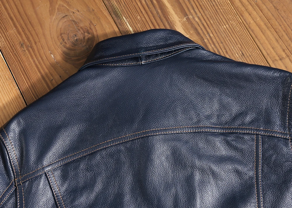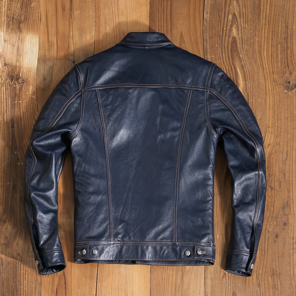Lee 101J Type Genuine Leather Jacket Men Blue Natural Cowhide Slim Short Coat Casual Style Single Breasted Clothes Autumn