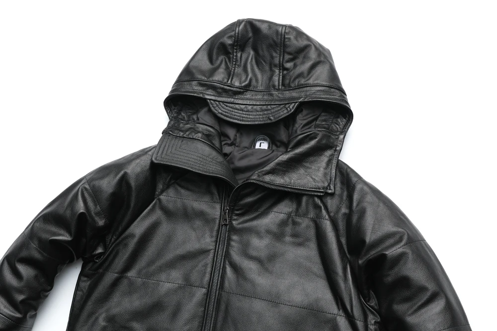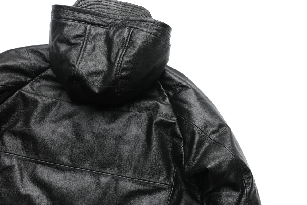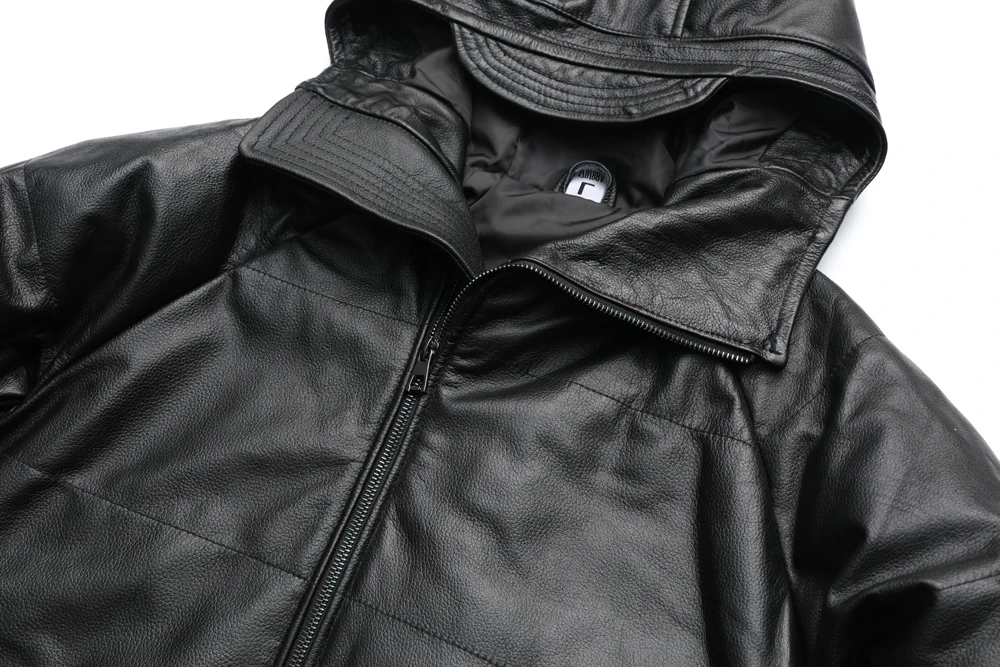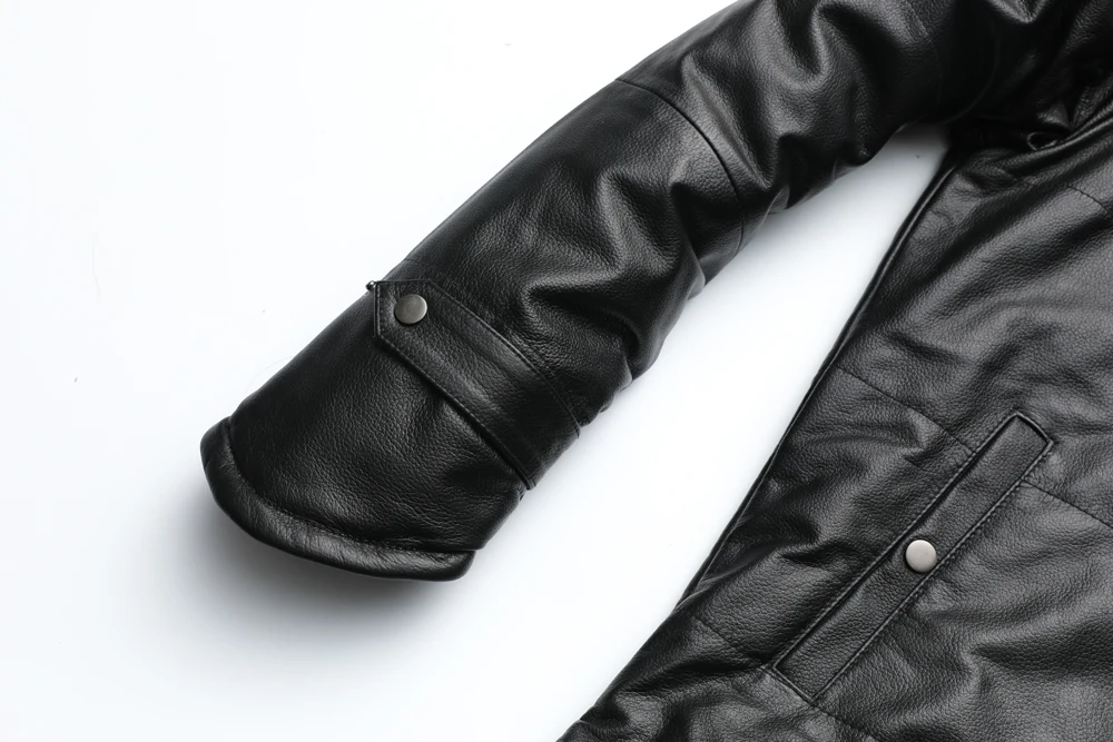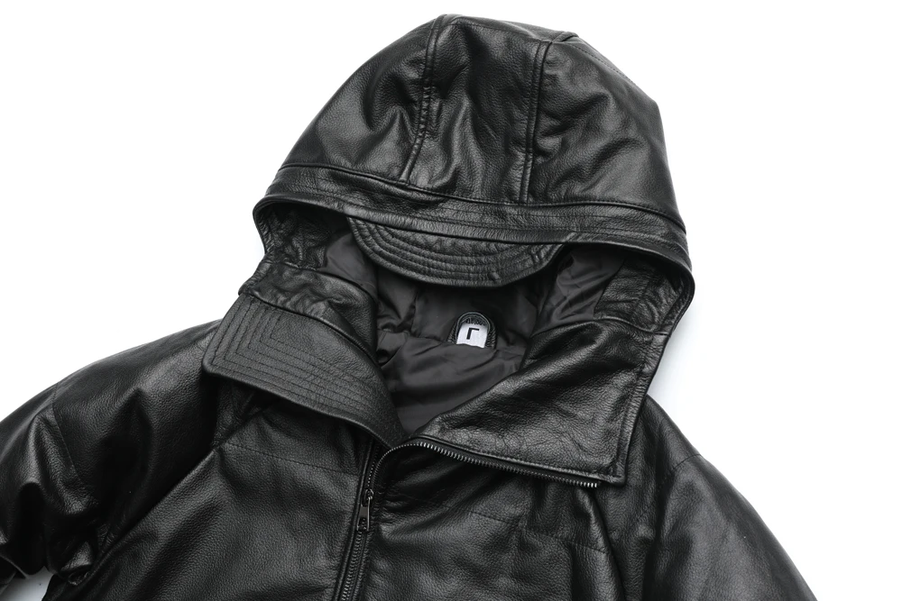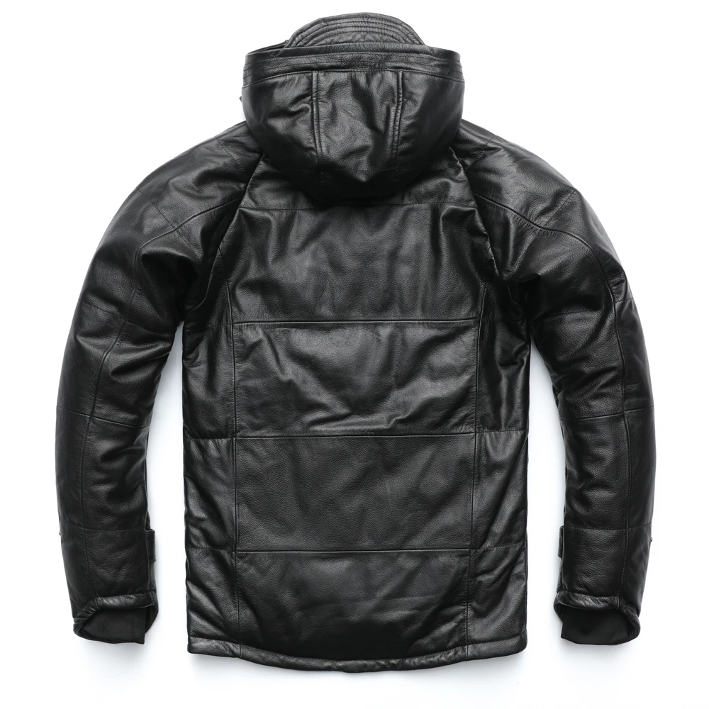 Long Winter Coat Thick Warm Men Leather Coat Quilted Hood 100% Natural Cow Leather Coat Long Clothing Overcoat M490