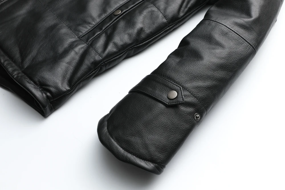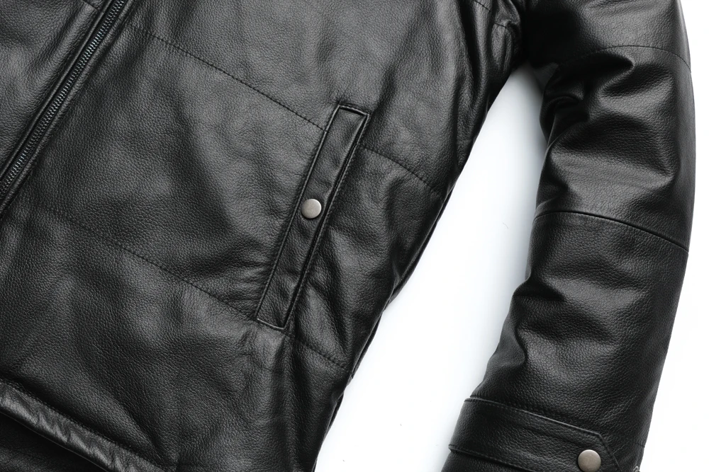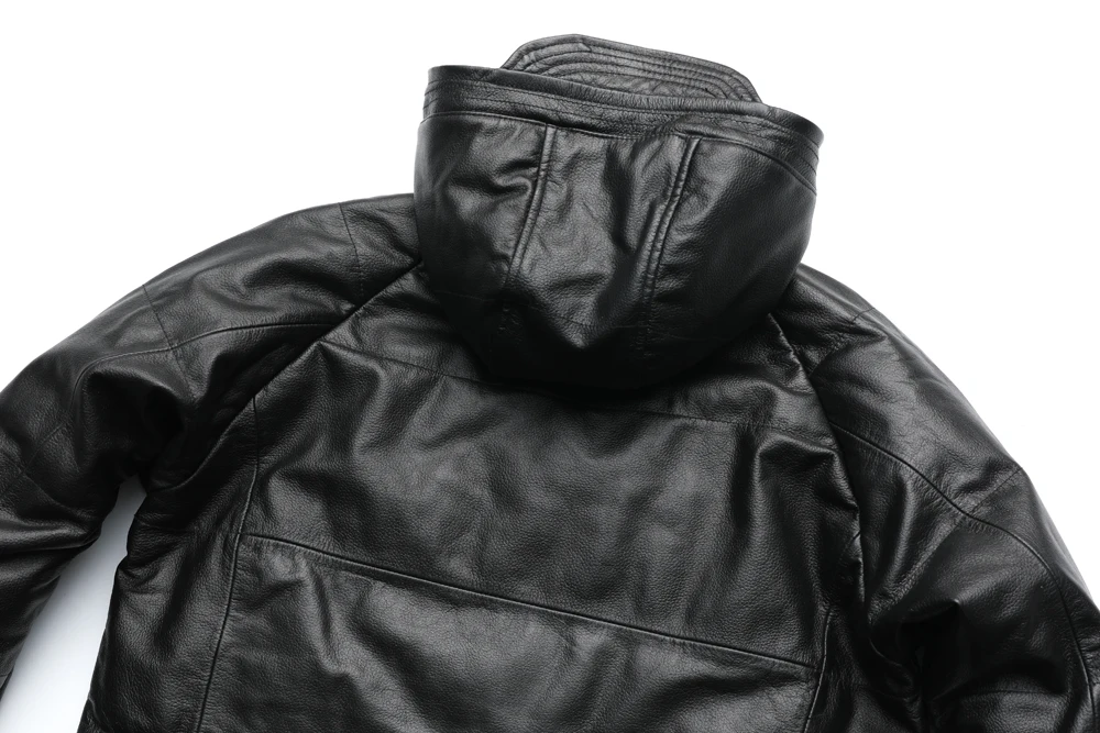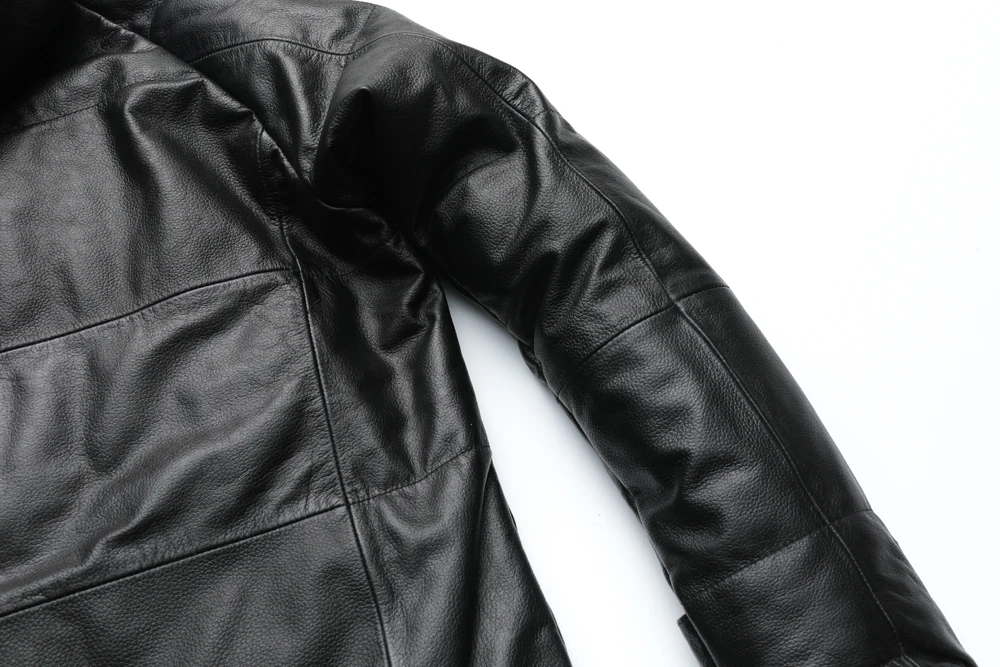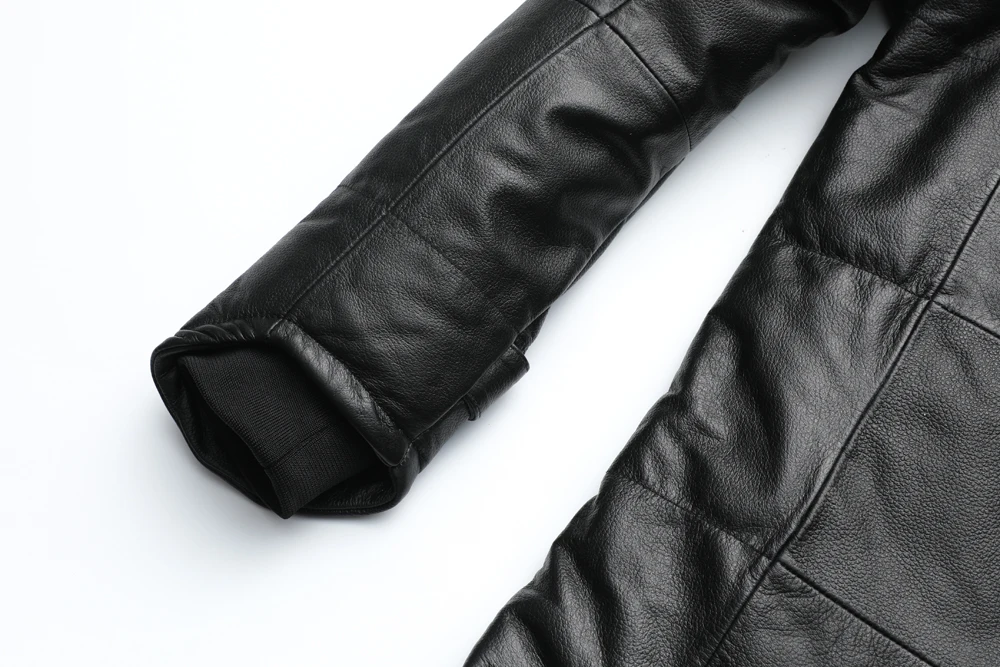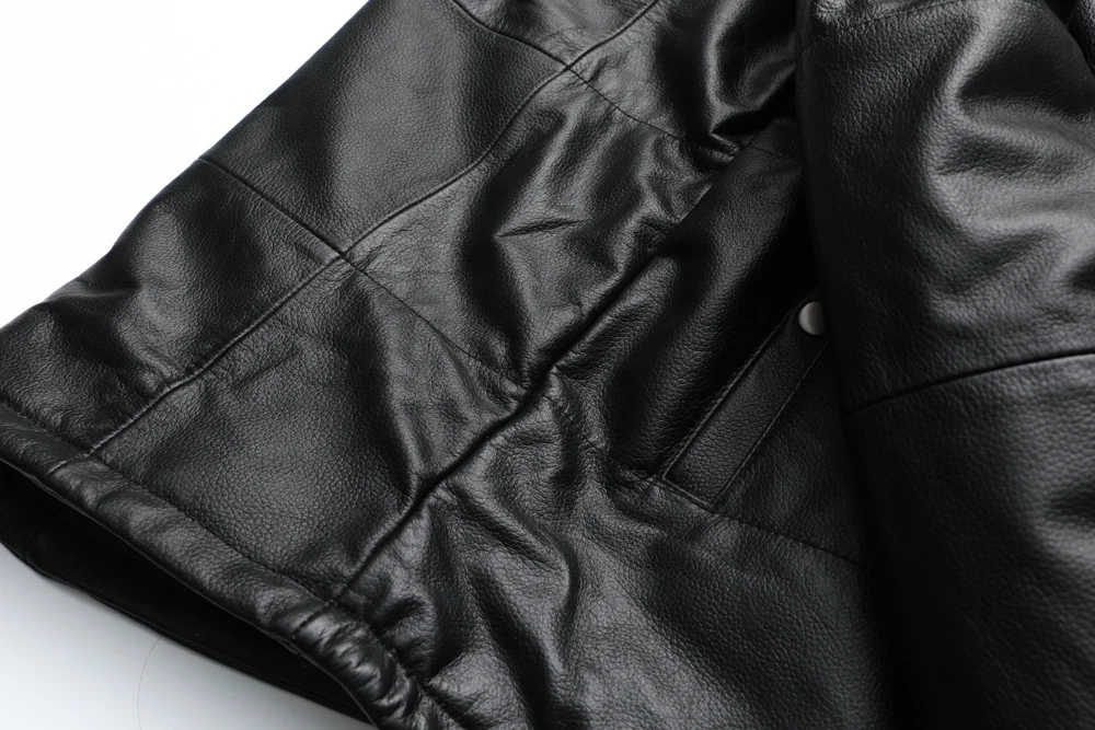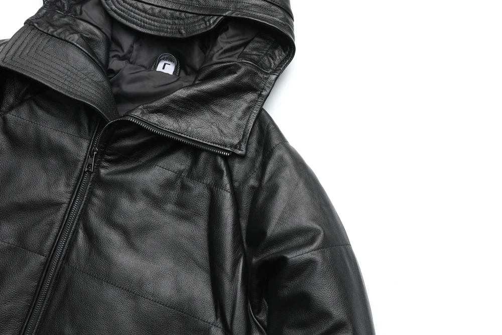 Long Winter Coat Thick Warm Men Leather Coat Quilted Hood 100% Natural Cow Leather Coat Long Clothing Overcoat M490