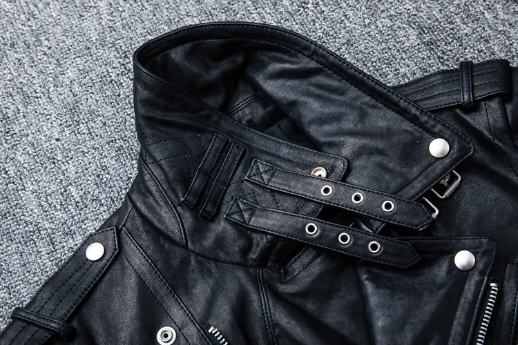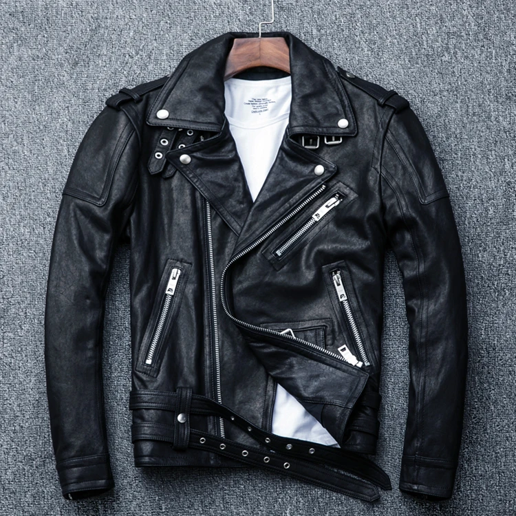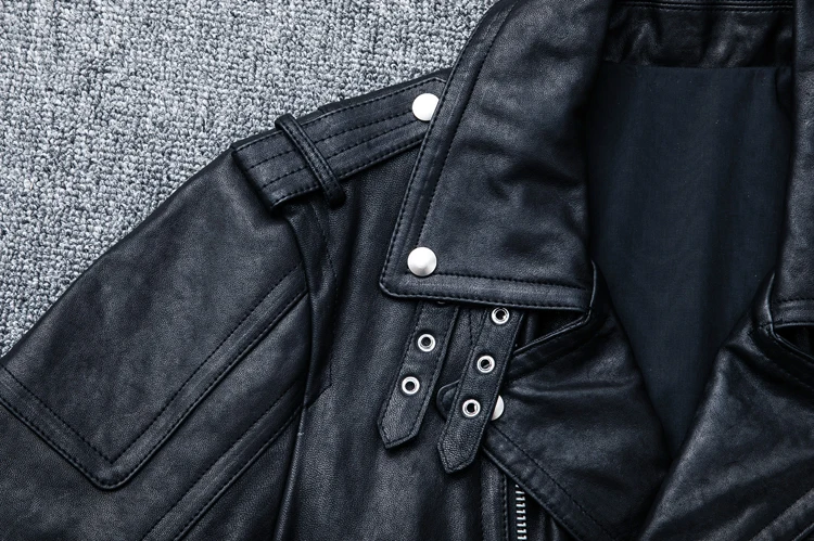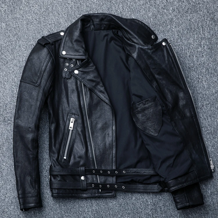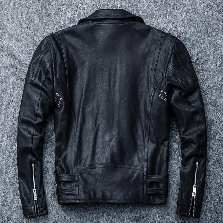 MAPLESTEED 100% Natural Sheepskin Tanned Leather Jacket Black Soft Men's Motocycle Jackets Motor Clothing Biker Coat Autumn M111