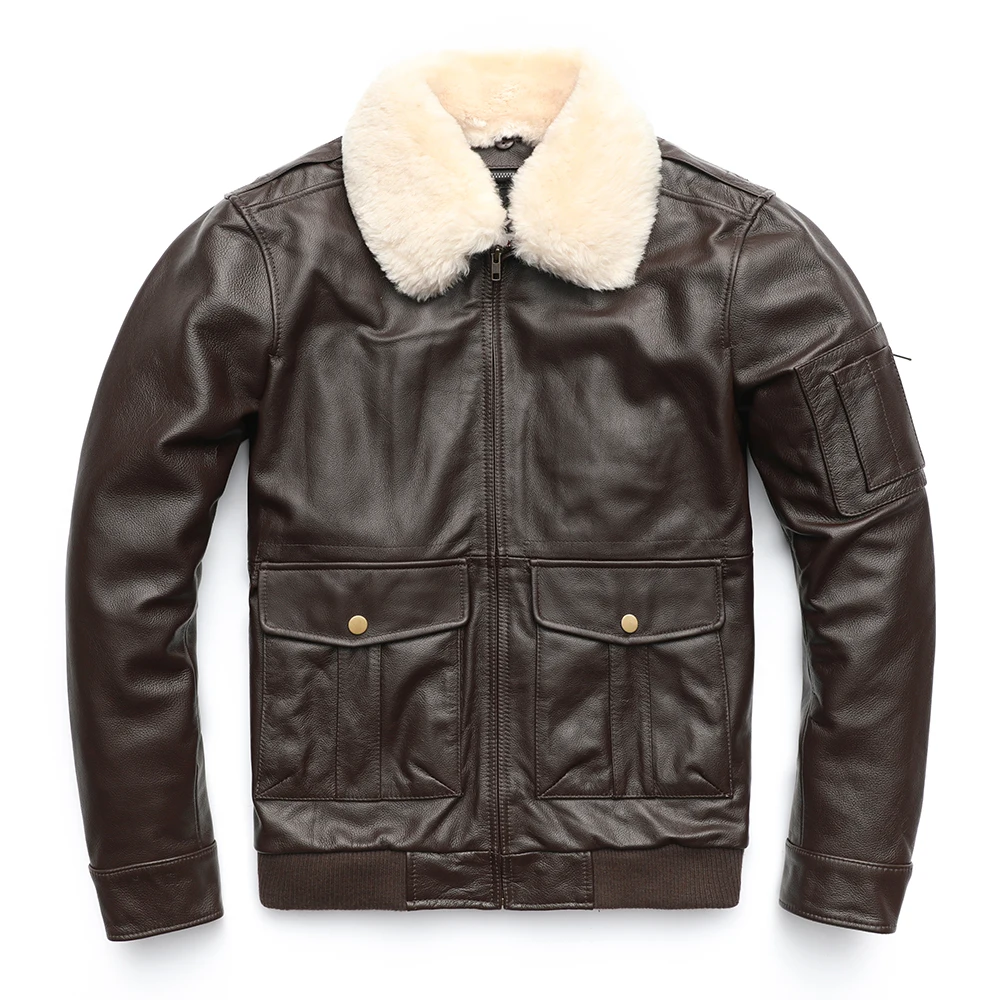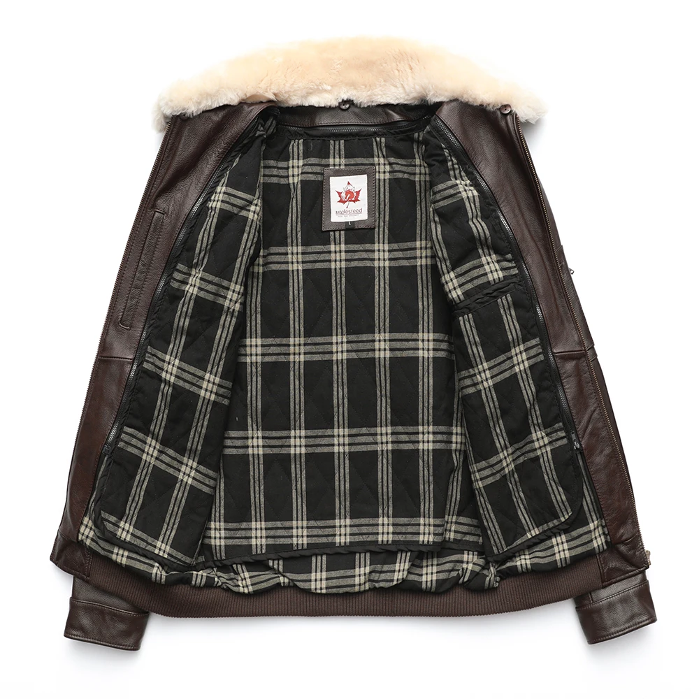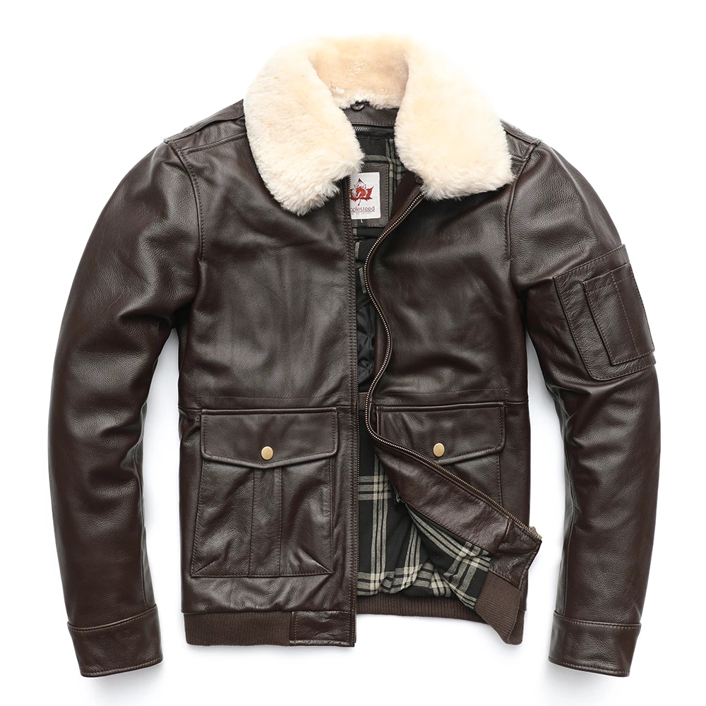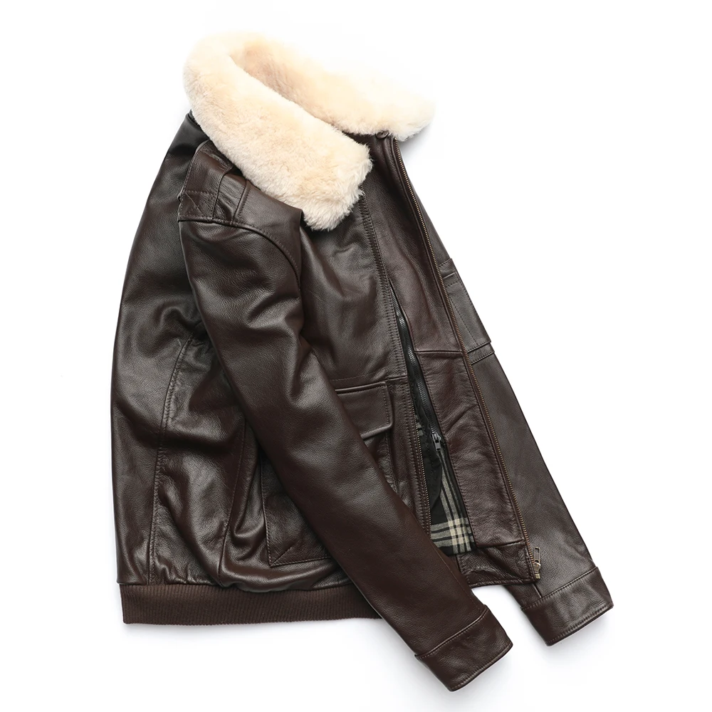 MAPLESTEED Genuine Cowhide Leather Jacket Men Zipout Liner Detachable Flight Jacket Men Winter Coat Fur Collar Euro/US Size M177