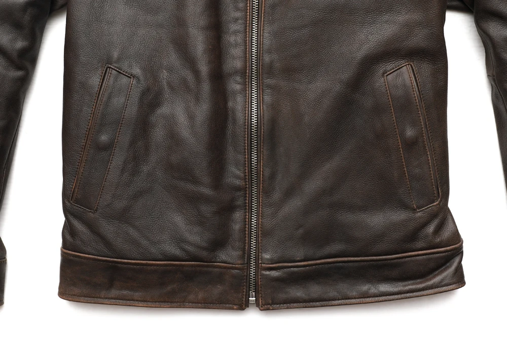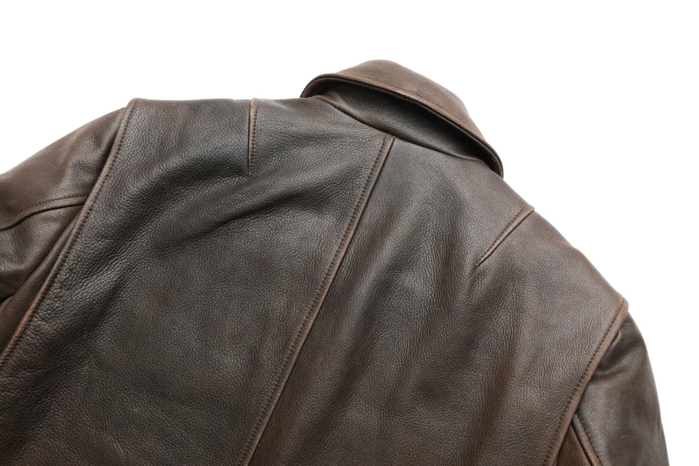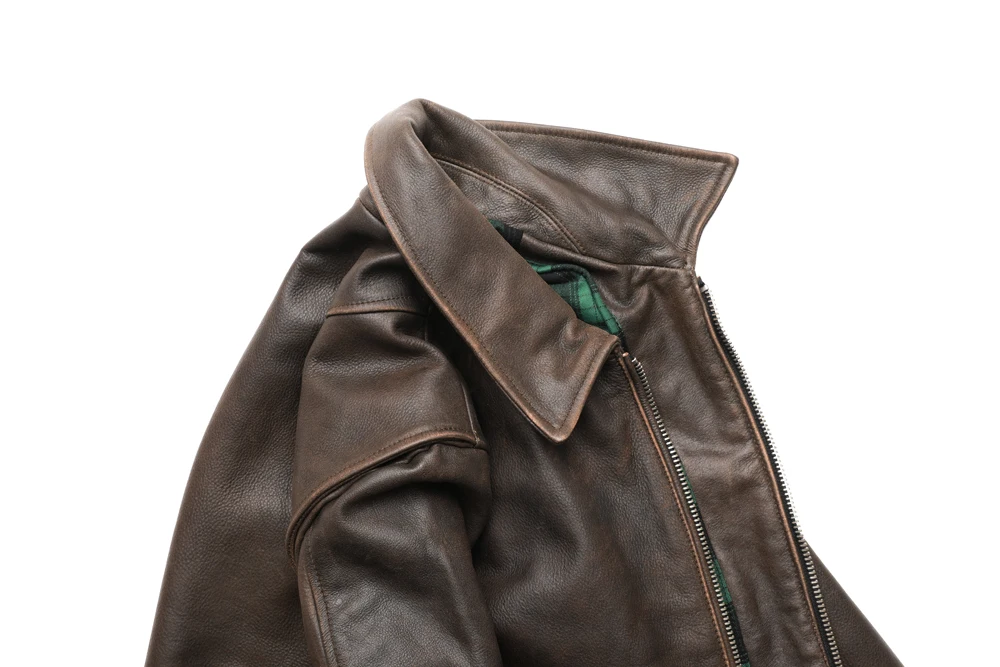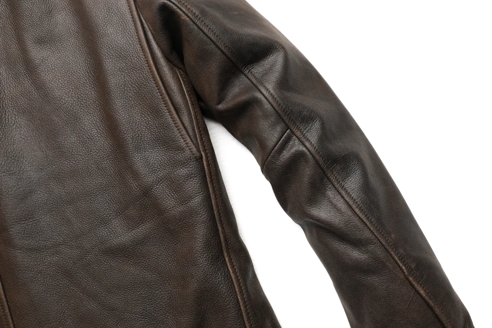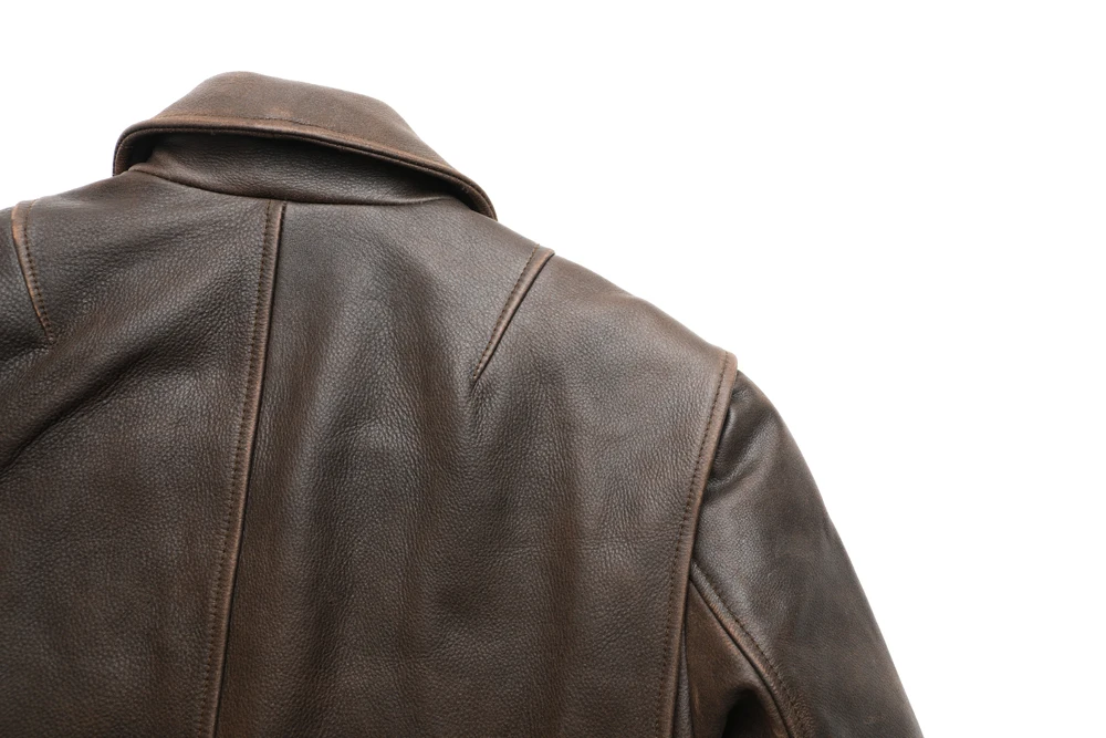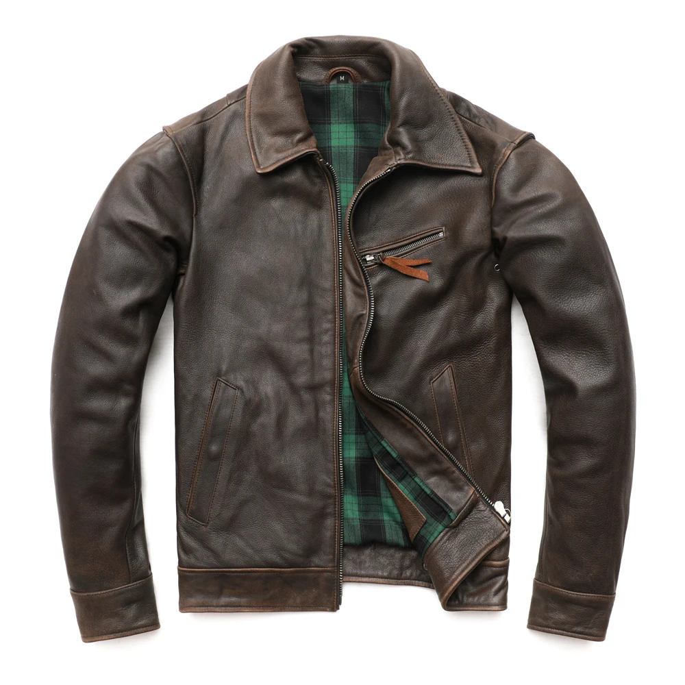 MAPLESTEED Super Vintage Men Leather Jacket Thick Soft Natural Cowhide Real Leather Coat Winter Sleeve 65-68cm M429