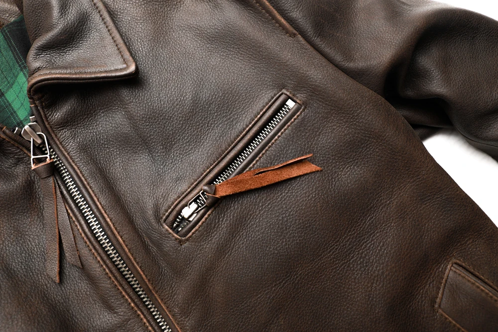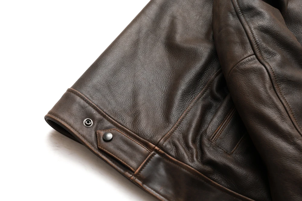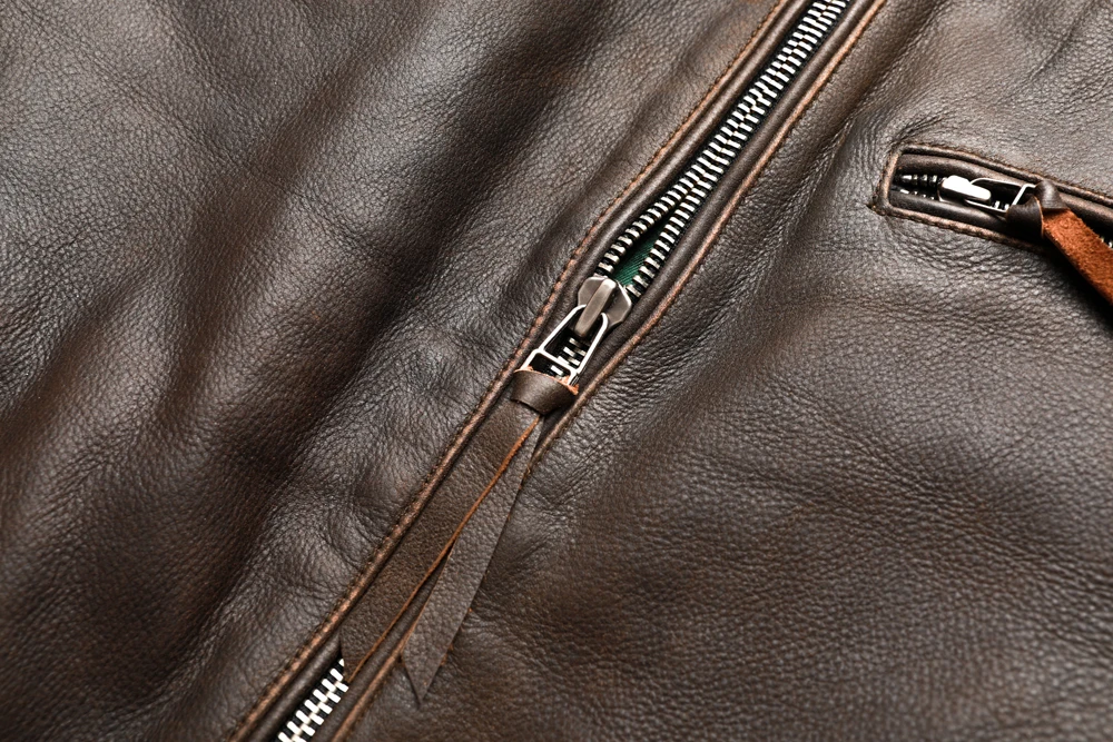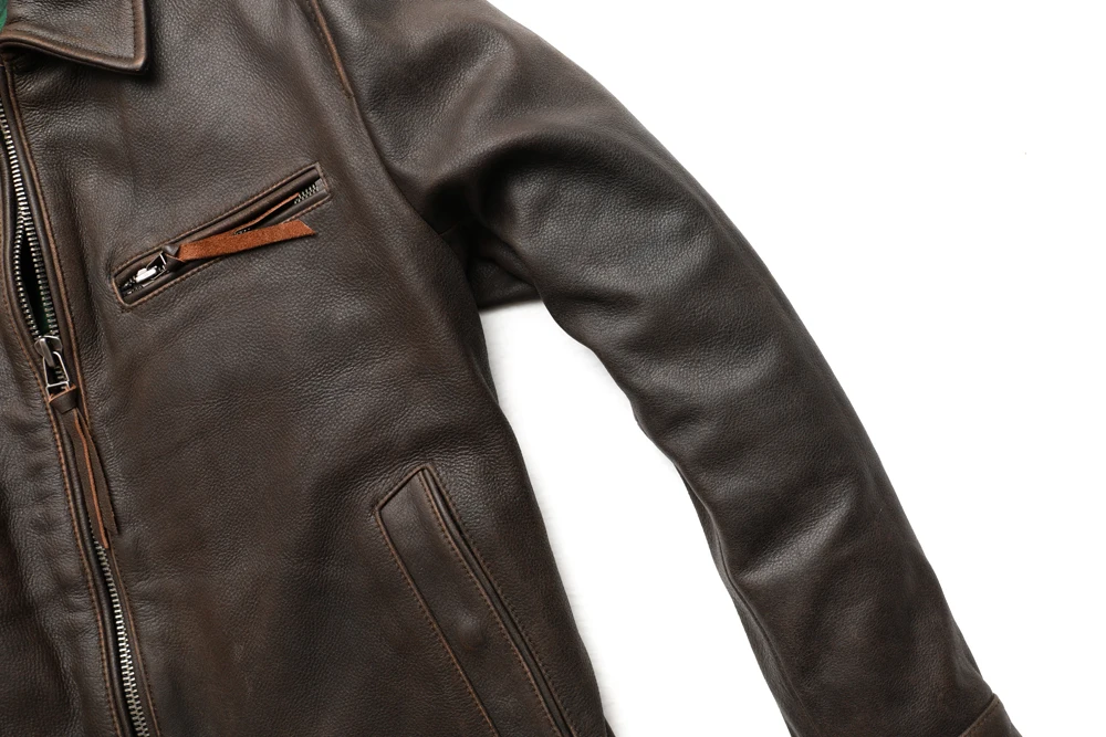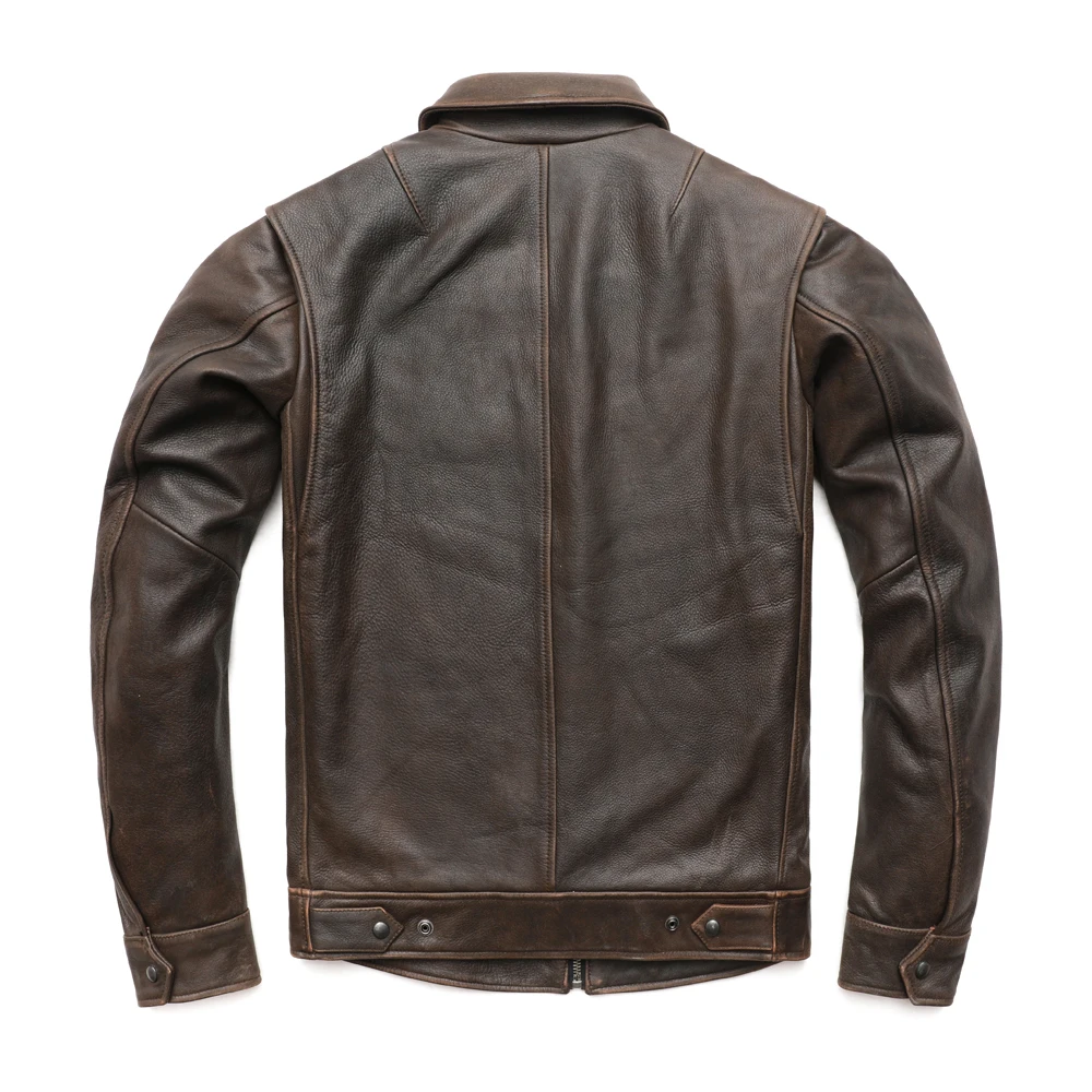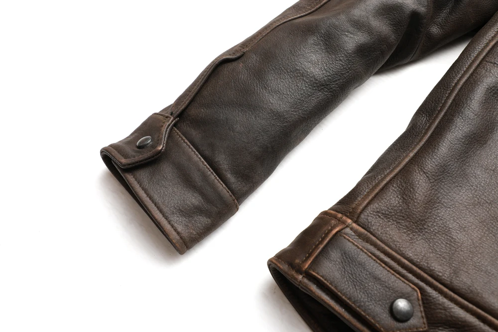 MAPLESTEED Super Vintage Men Leather Jacket Thick Soft Natural Cowhide Real Leather Coat Winter Sleeve 65-68cm M429