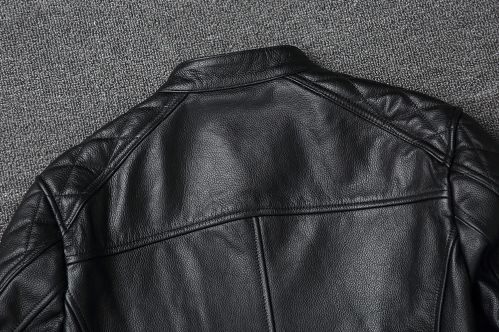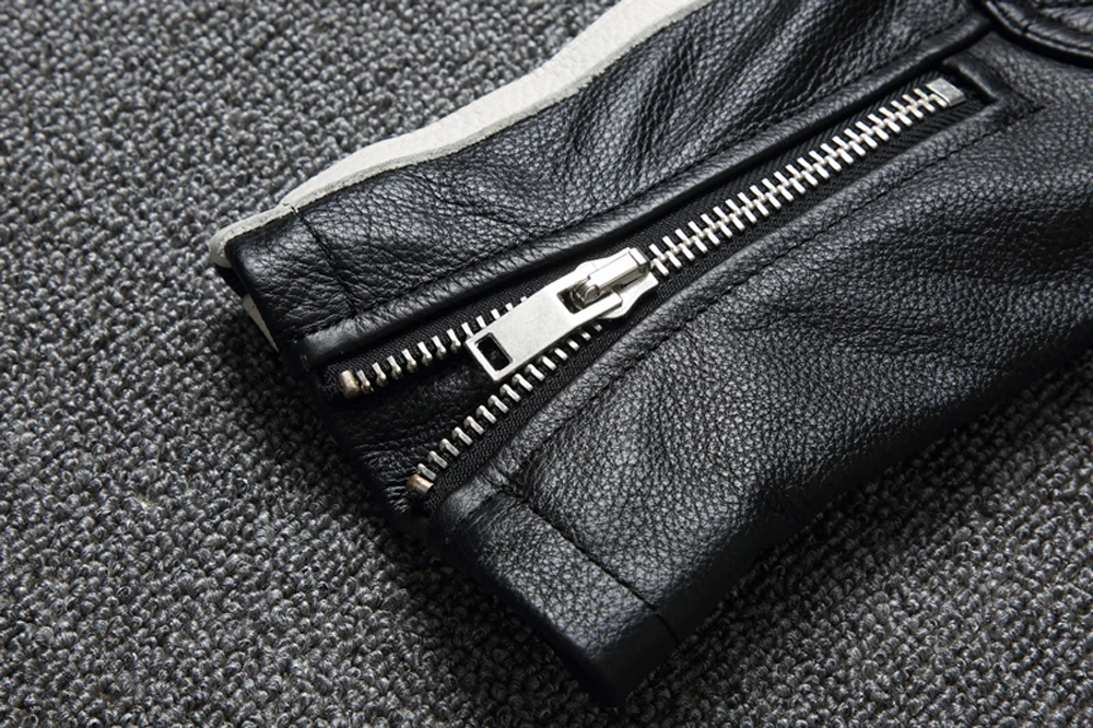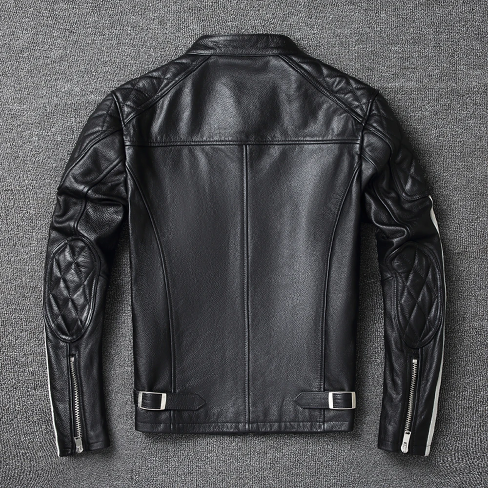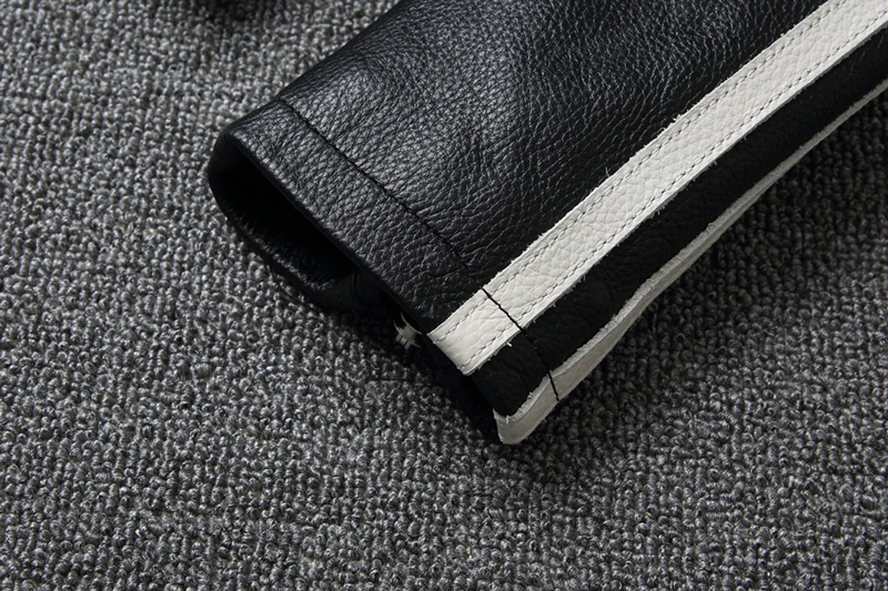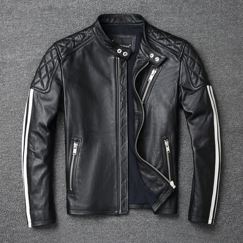 Men Leather Jacket 100% Genuine Cowhide Leather Jackets Slim Fit White Stripes Men Natural Skin Coat Autumn Clothing M420