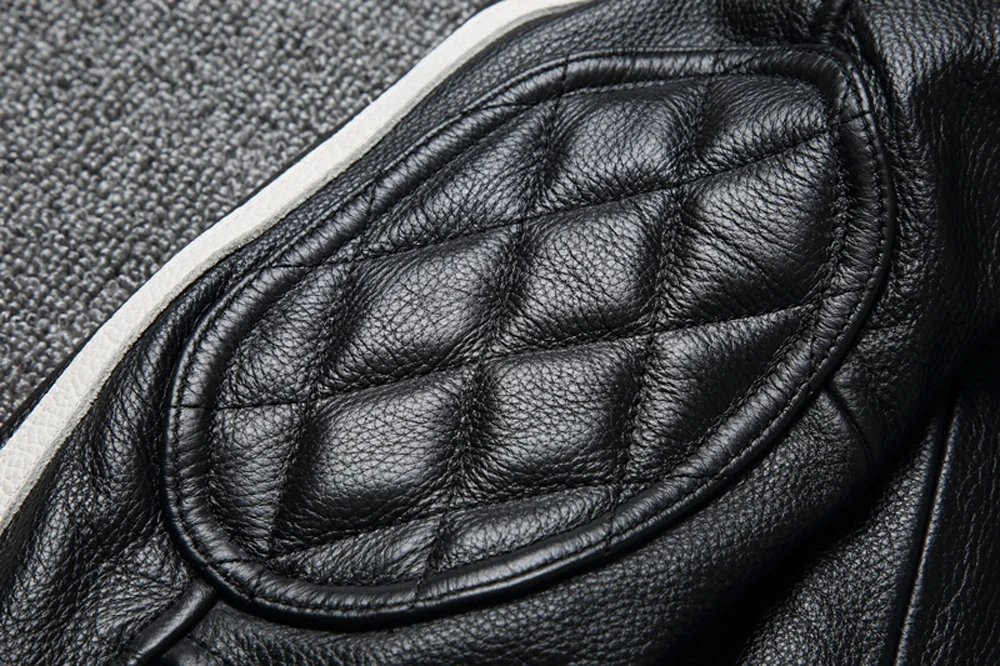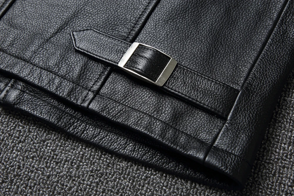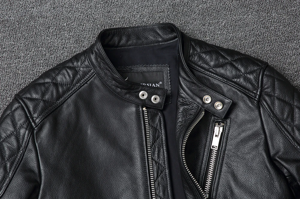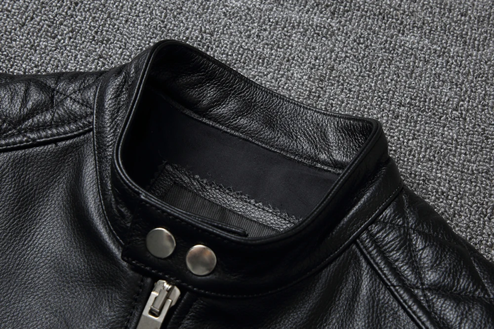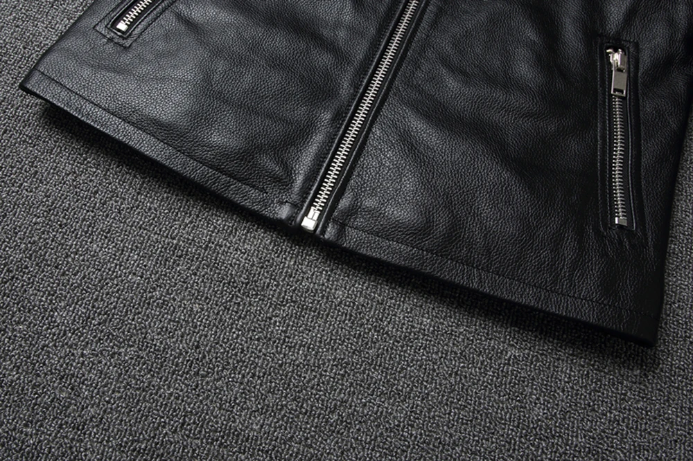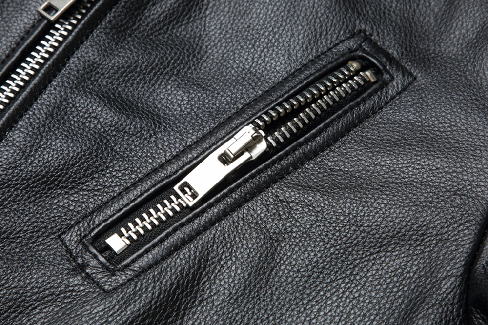 Men Leather Jacket 100% Genuine Cowhide Leather Jackets Slim Fit White Stripes Men Natural Skin Coat Autumn Clothing M420