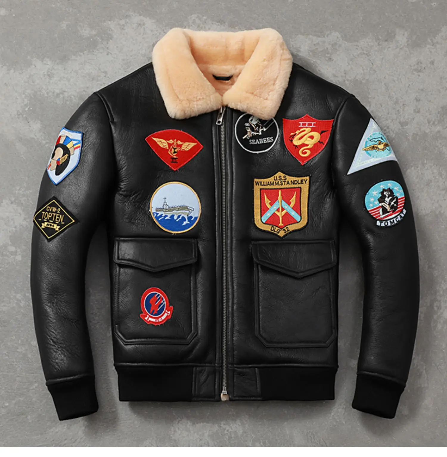 Natural Sheepskin Fur Men Shearling Coat Thick Warm 17 Patches G1 Flight Jackets Winter Aviator Coat Men Leather Jacket 가죽점퍼