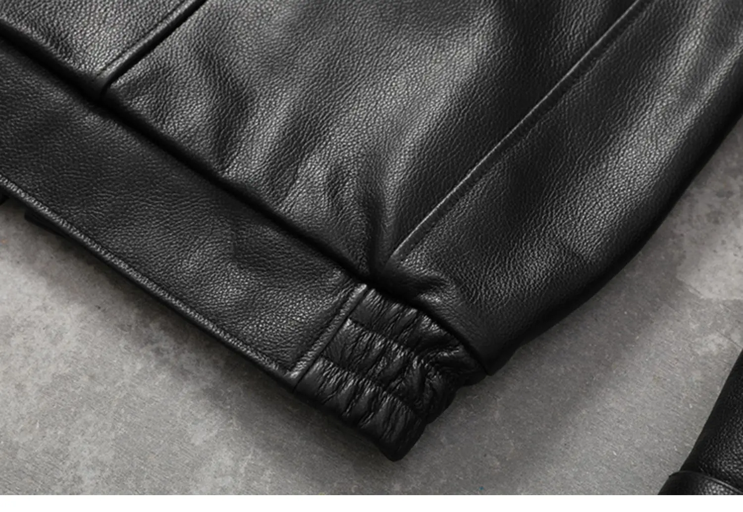 New Fashion Genuine Leather Cowhide Lapel Flight Suit Style Leather Multi-pockets Men Leather Jacket Aviator Jackets Autumn