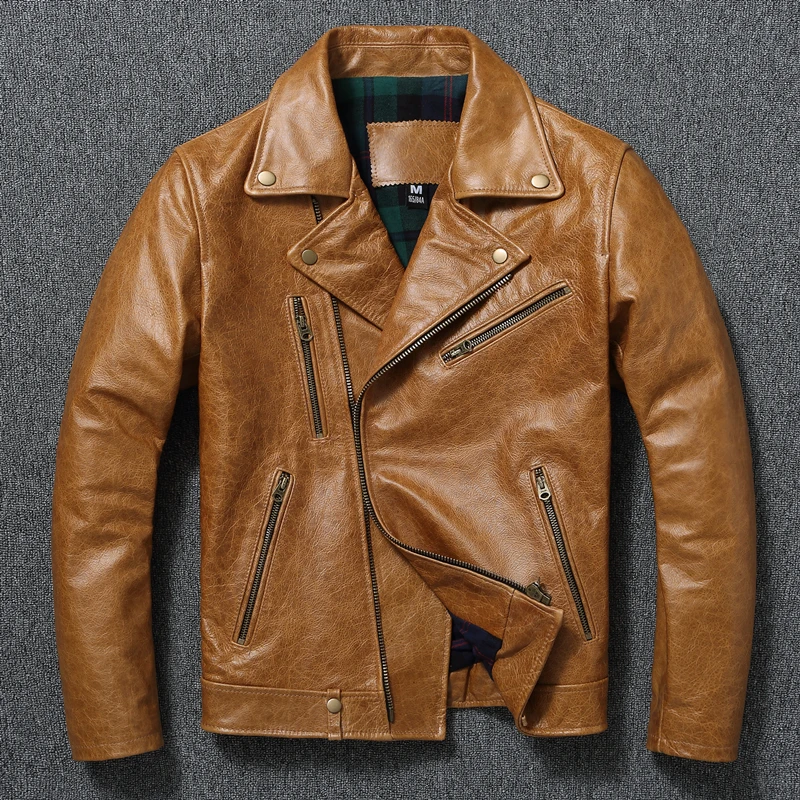 Oil Waxed Genuine Cow Leather Jacket for Men Cowhide Motorcycle Biker Jackets Jaquetas Masculina De Couro мужские зимние куртки