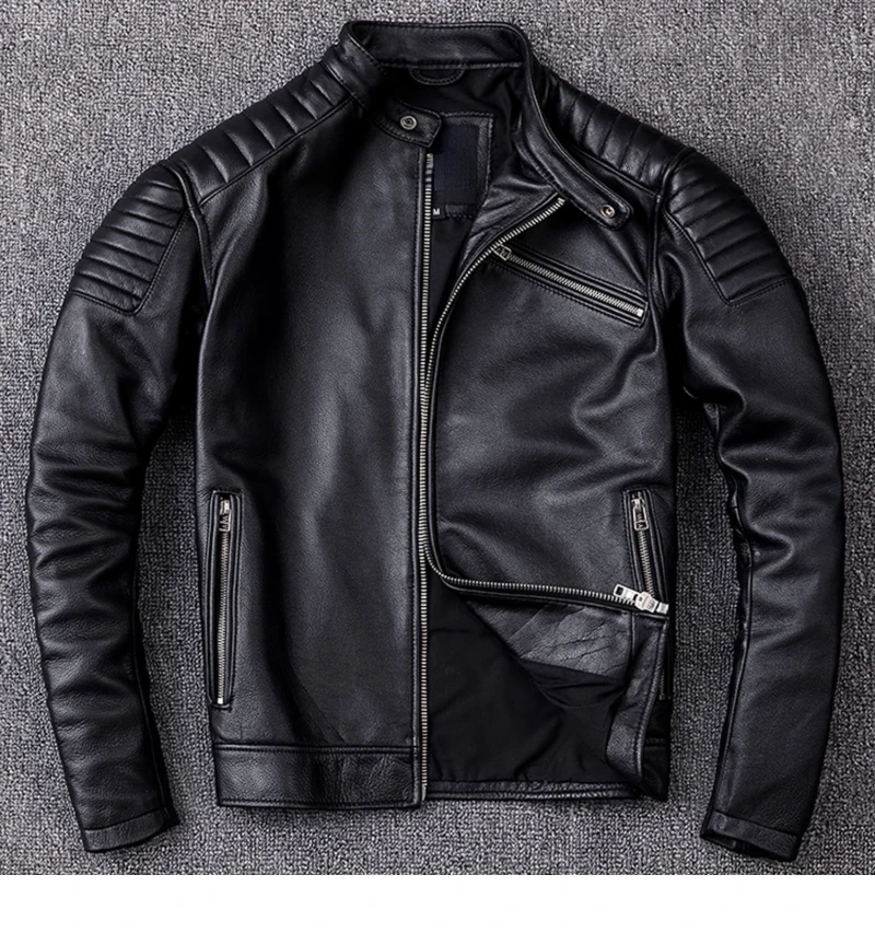 Spring Autumn Motorcycle Genuine Leather Jacket Men's Real Cowhide Coat Vintage Brown Slim Fit Clothes Chaqueta De Los Hombres