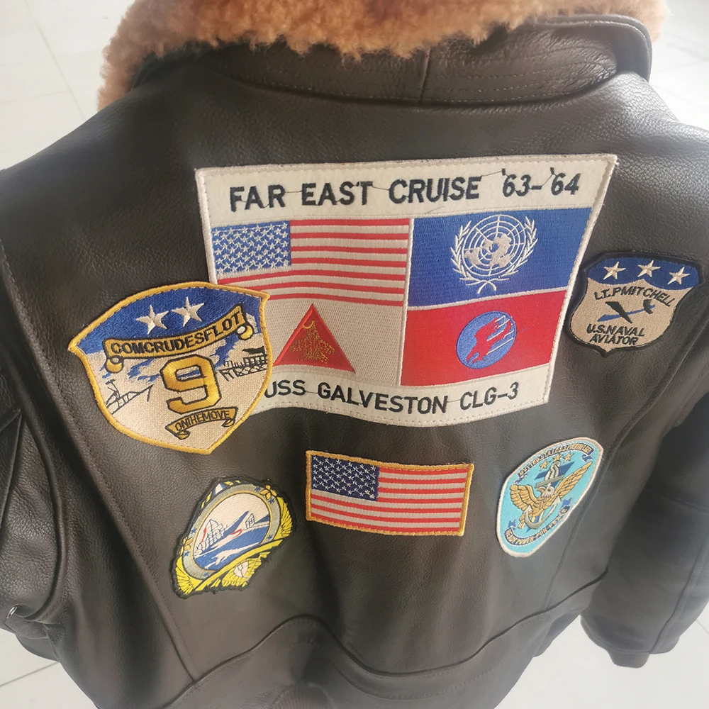Aviator Bomber G1 Pilot Leather Jacket Plus Size Real Fur Collar Cowhide Biker Leather Coat For Men Flight Jacket Winter 2XL-3XL