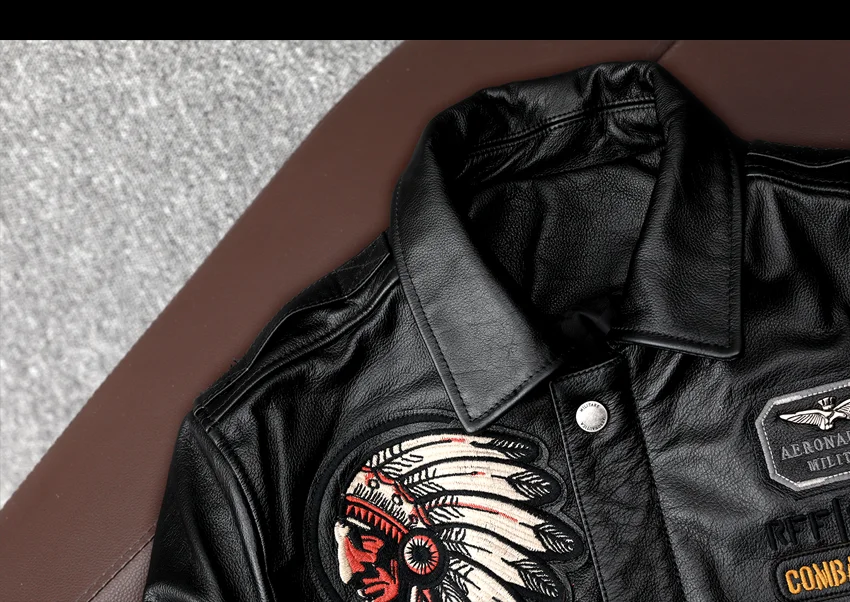 New Indian Embroidery Flying Suit Natural Genuine Leather Coat Men's Cowhide Leather Motorcycle Jackets Slim Fashion Clothing