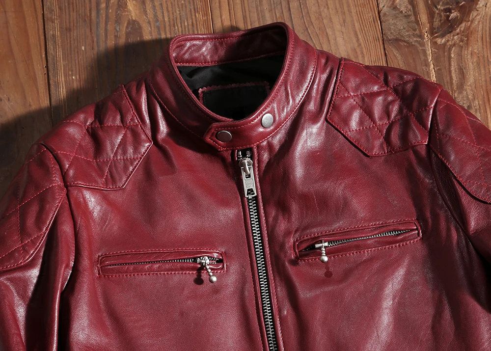 New Red Motorcycle Biker Leather Jacket Genuine Leather Spring and Autumn Coat Slim Quality Sheepskin Soft Clothes
