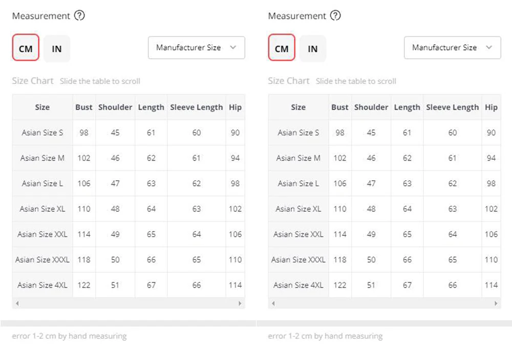 Please choose the size according to the size parameters in the table size, not only choose the size simply.