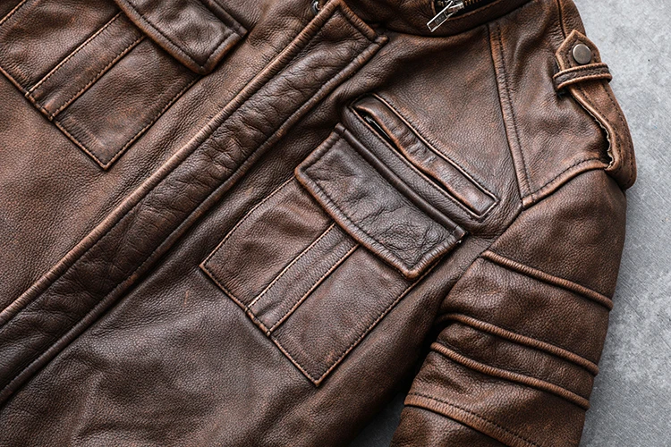 Vintage Motorcycle Jacket Men Leather Jackets 100% Genuine Cowhide Slim Fit Skin Coat Man Biker Clothing Autumn M698