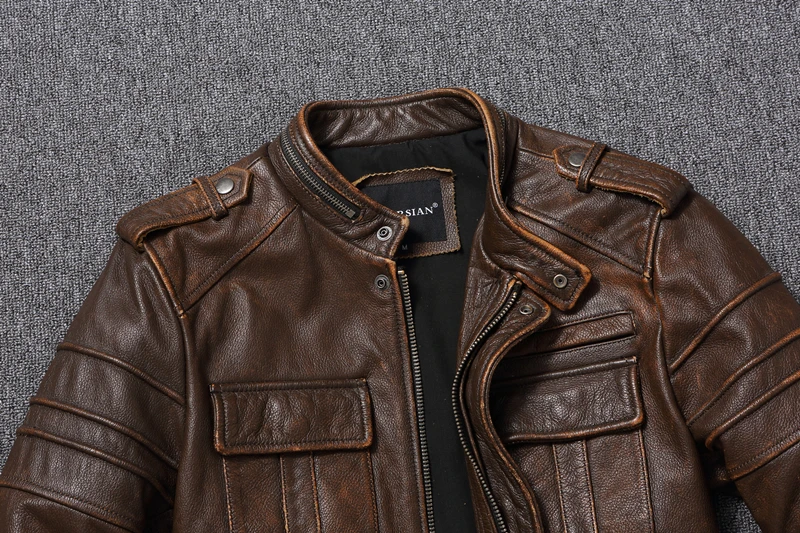 Casual Leather Jacket Men Real Cow Leather Retro Vintage Leather Jackets Mens Jackets Chaqueta De Cuero Para Hombre Casacos