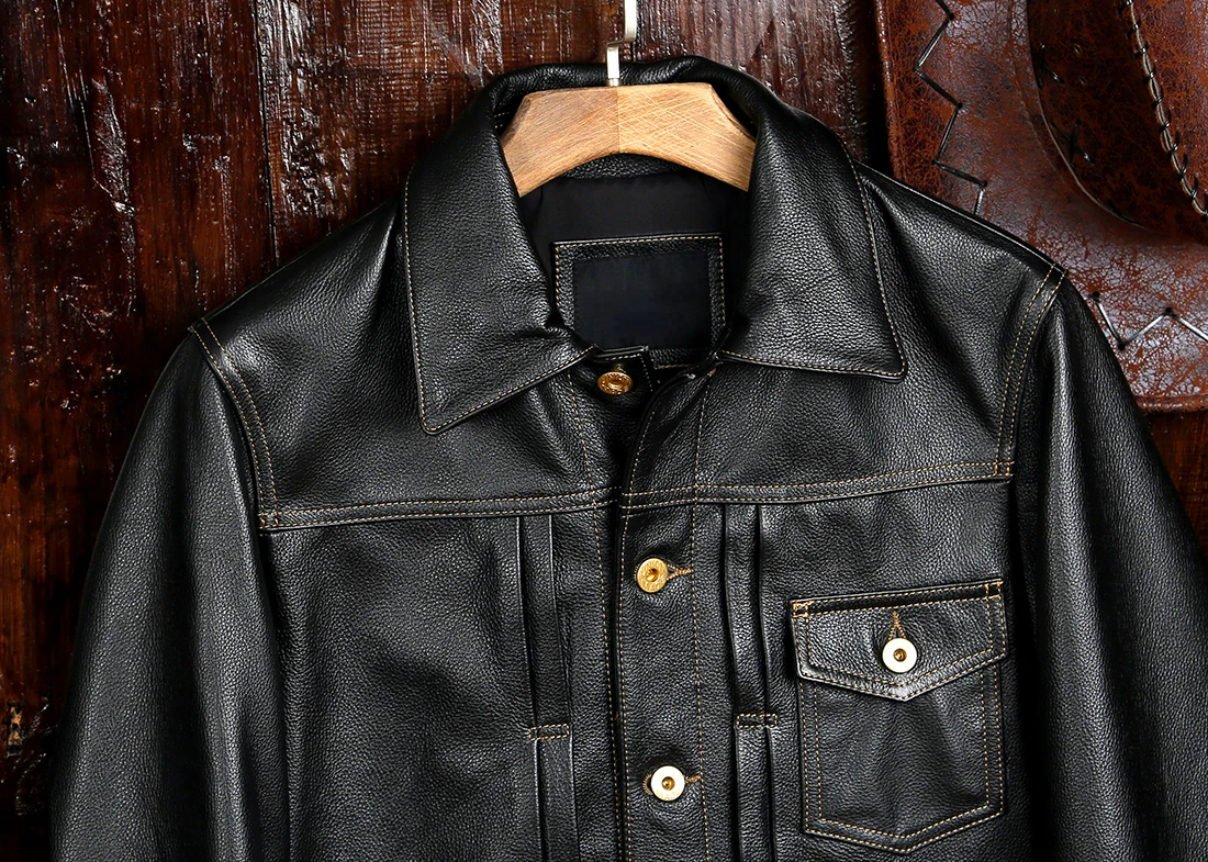 Classical 506 Style Men's Cowboy Natural Cowhide Jacket Slim Quality Genuine Leather Coat Man Short Single Breasted Clothes